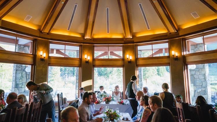 Moonbeam Lodge offers a bright and spacious interior characterized by high ceilings and an abundance of natural light. Its versatile layout makes it a fantastic canvas for couples looking to create a custom reception experience. With its convenient base-area location, it provides easy access for guests while maintaining a strong connection to the mountain scenery through its large glass walls. Whether you are planning a formal sit-down dinner or a high-energy dance party, the lodge’s open feel and modern amenities provide a polished mountain setting for your big day.