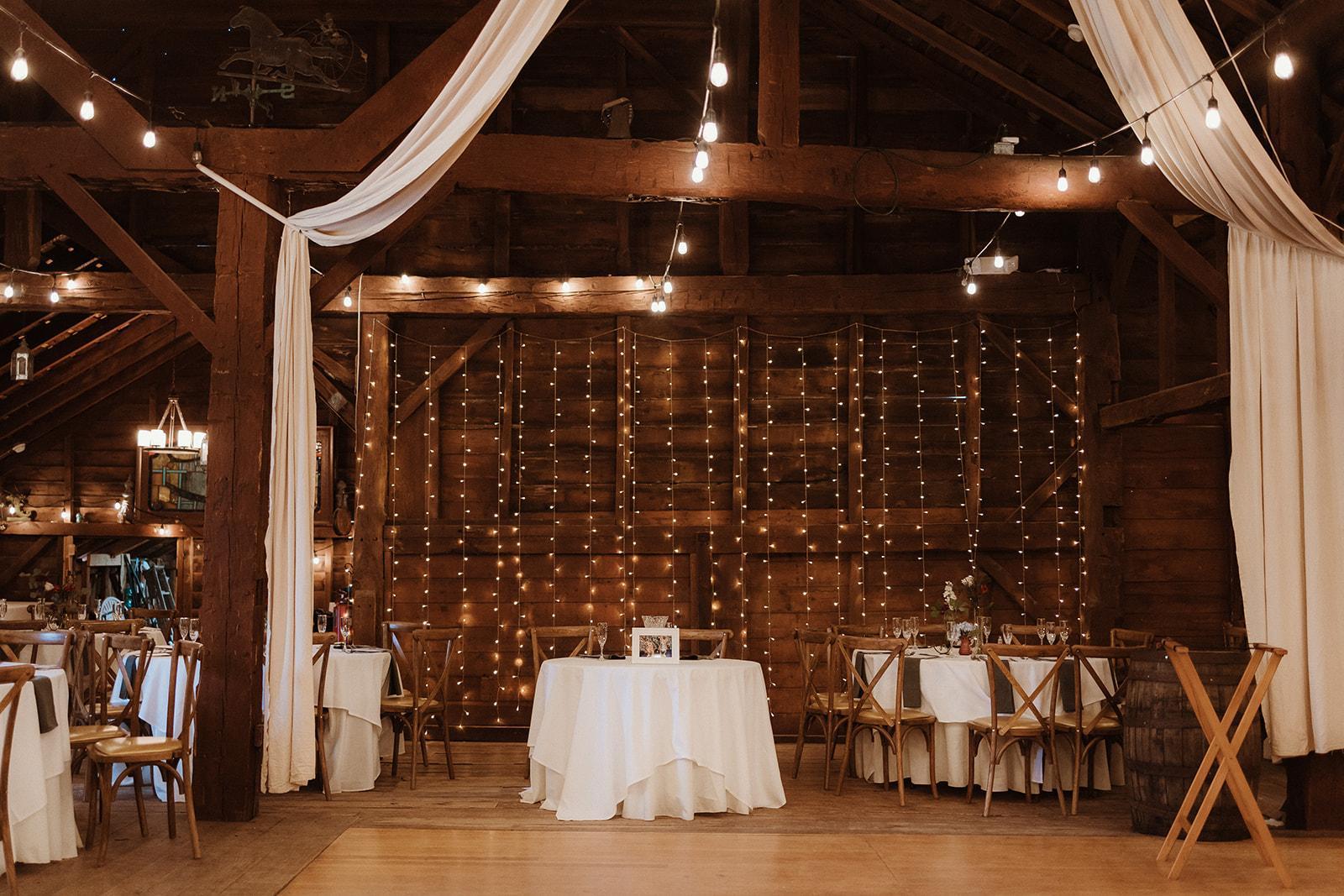 Our remarkable Stablegate Barn built in 1847 was once the home of the famous Elsie the Cow. The Dutch barn features 30-foot high ceilings, bistro lighting and antique decor, newly renovated restrooms, a late-night fire, and seating for up to 150 guests inside with additional tent options for up to 200 guests. Surrounded by grape vines, roaming horses, and star-filled skies, this venue is perfect for the couple looking for rustic charm and a venue unlike any other.