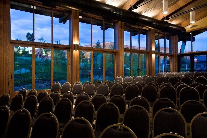 The world renowned 569-seat Strings Music Pavilion in Steamboat Springs is one of the best places to see live music concerts in Colorado. The Pavilion is an intimate music venue with a unique bow-string truss roof design and stunning architecture. Two sides of the pavilion are retractable glass doors, so your guests can see the mountains around us. Venue Pricing is all-inclusive for staff and amenities onsite.