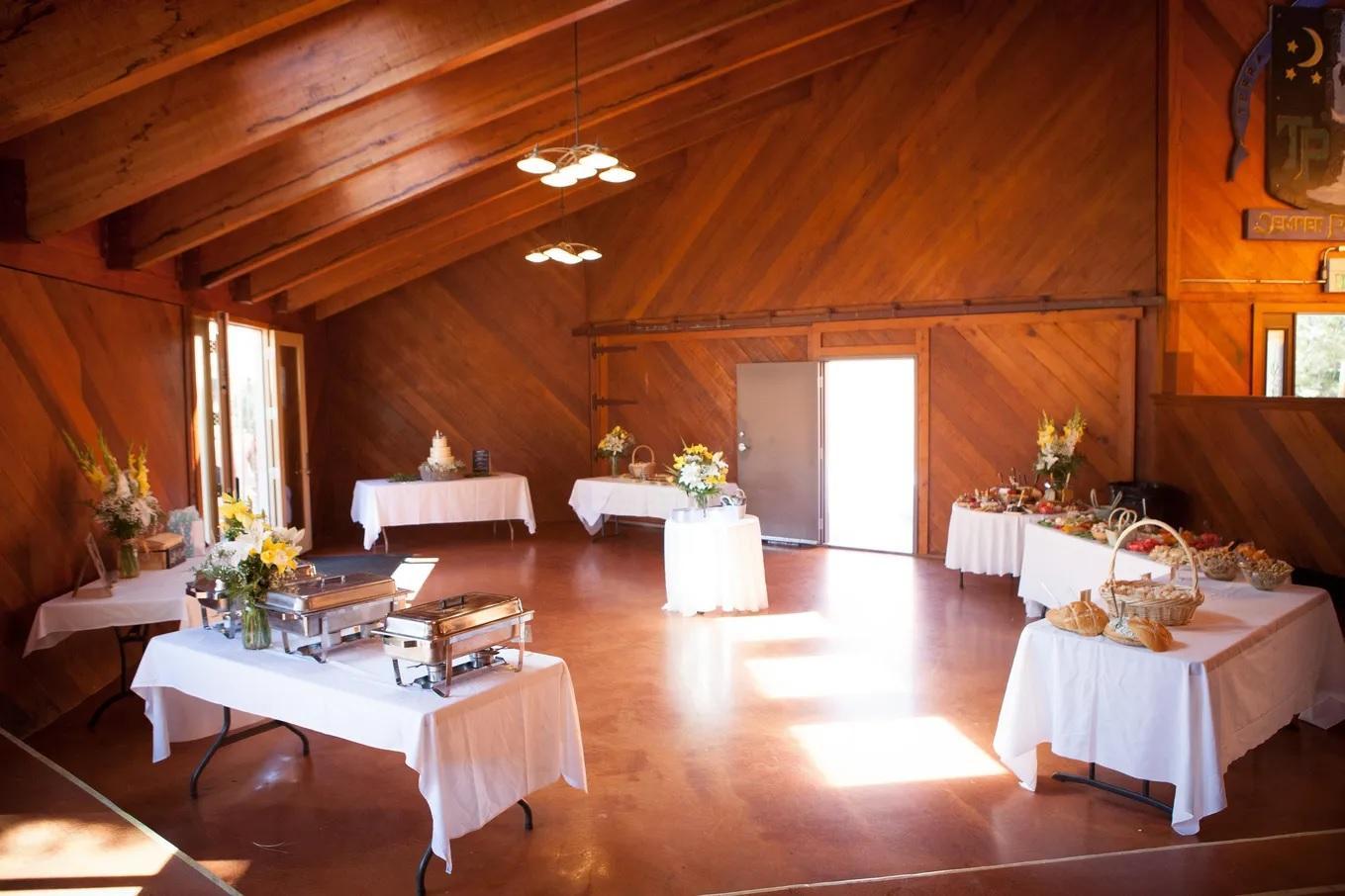 - Tables and chairs for up to 120 guests - A selection of 60" round dining tables - Rectangular banquet tables for buffet, gifts, or décor - Wine barrels with matching bar tops for décor or beverage service - Exclusive use of the entire beach - Exclusive use of lawns for further decorations or party games - Kitchen prep area (dessert-drinks fridge, freezer, sink, counters - Serving bar - Restrooms - On‑site parking