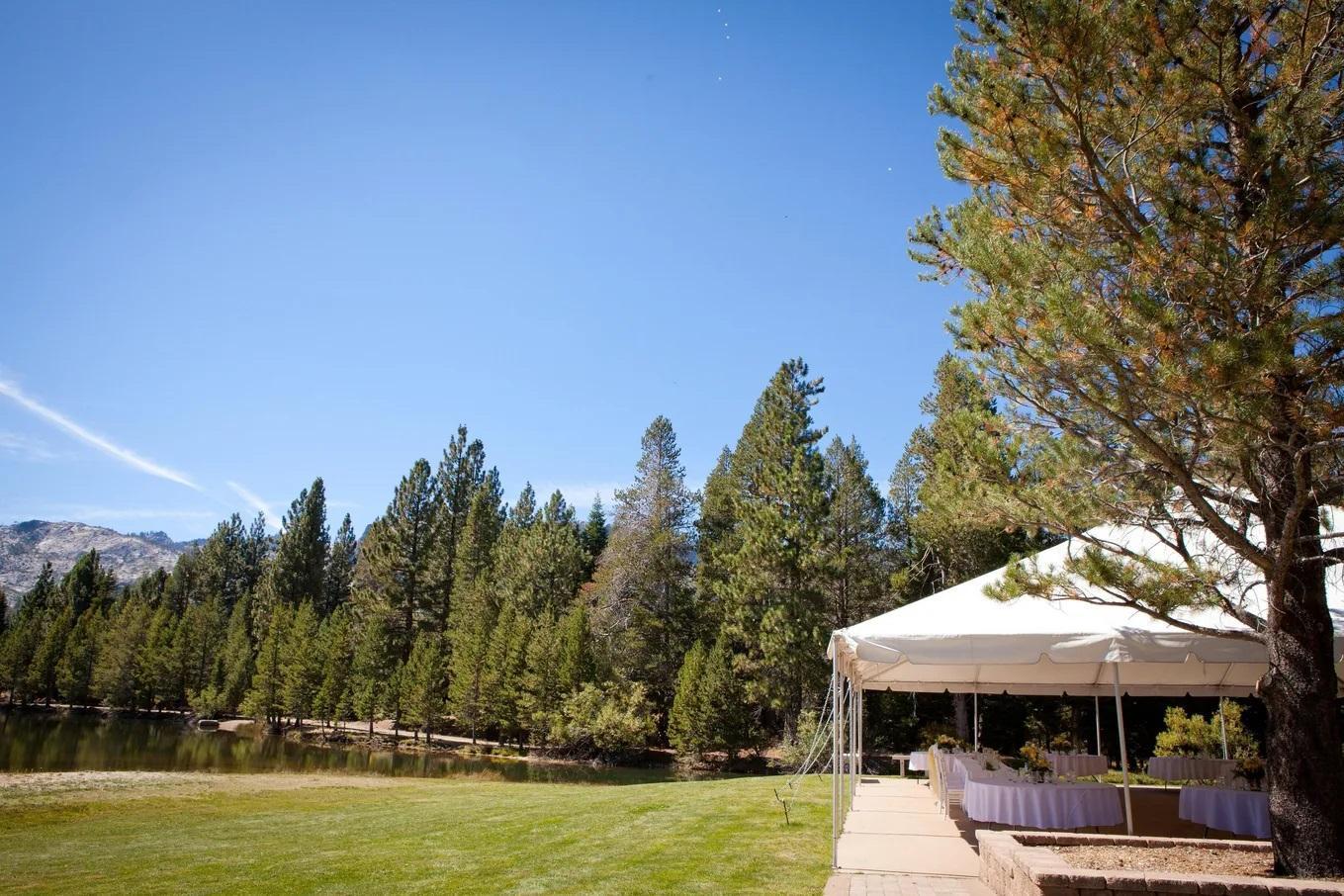 Paradise Park offers a relaxed, scenic Tahoe setting with both indoor and outdoor spaces. The clubhouse hosts up to 150 guests, and the lakeside patio and reserved event lawn expand capacity to 300. Couples enjoy private access to their ceremony and reception areas, including a secluded lakeside lawn and beach section. With mountain views, a peaceful lakefront, and our iconic 1,500‑year‑old ceremony tree, the venue blends natural beauty with flexibility and a truly Tahoe vibe