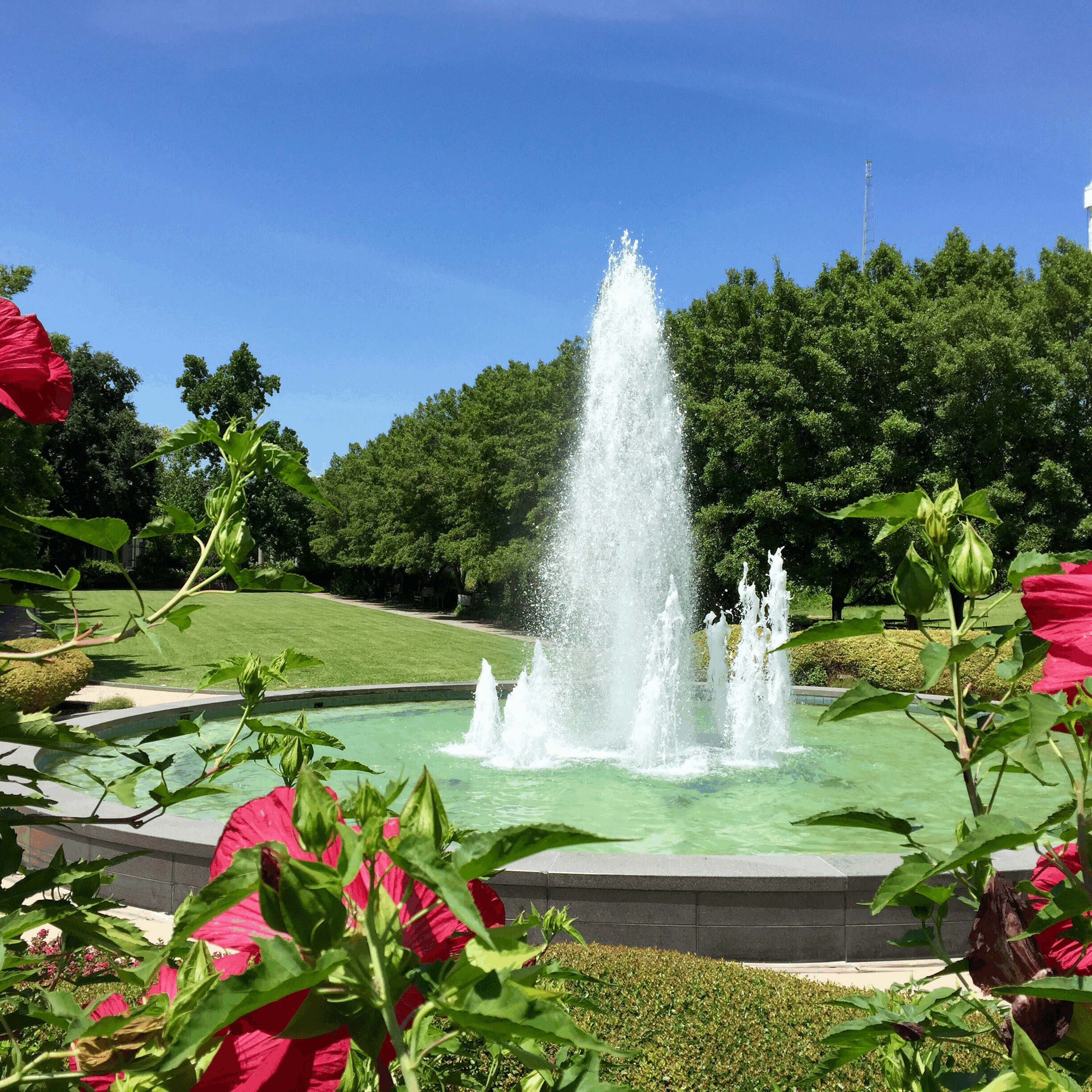 Grand symmetry anchored by a soaring fountain.