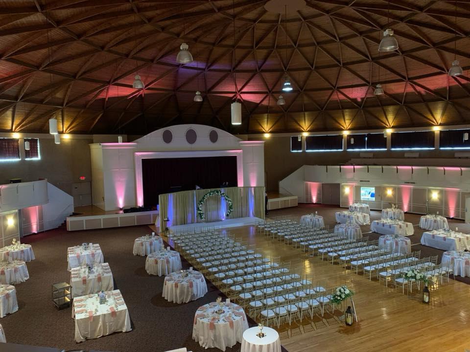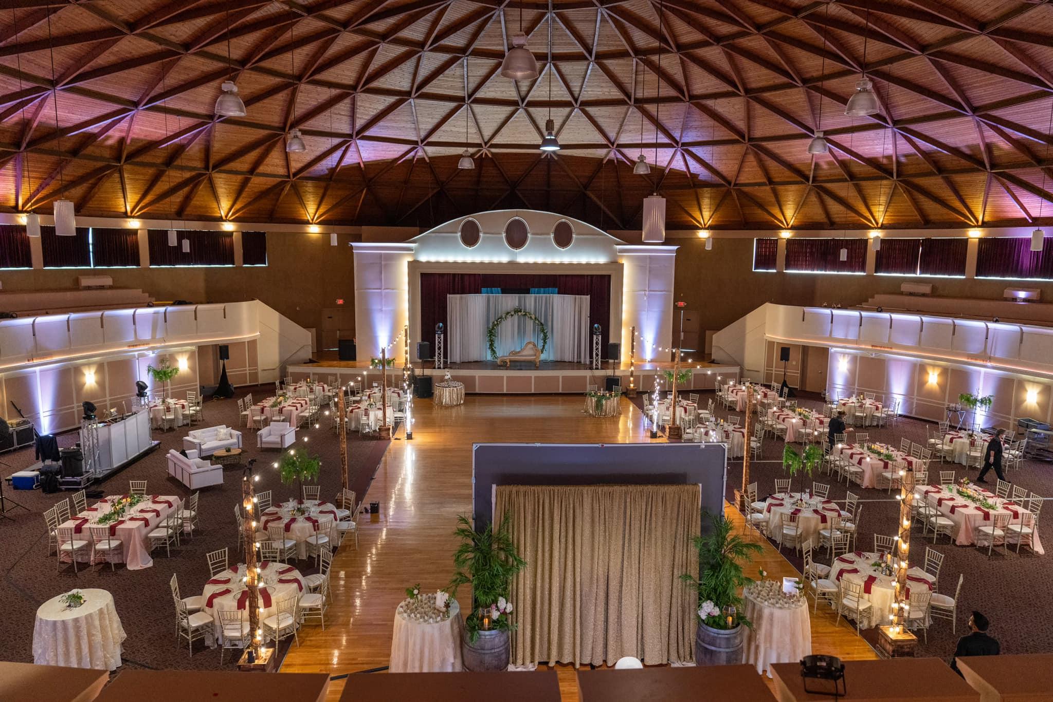 Welcome to the Astrodome Event Center: Event and Wedding Venue. The Astrodome Event Center is home to a 50-foot high wood beam ceiling, which sets your wedding venue apart from every other event space in Cleveland, Ohio. The 100-foot circular dining room is unobstructed by any columns, leaving the center open for many guests and a night full of dancing.