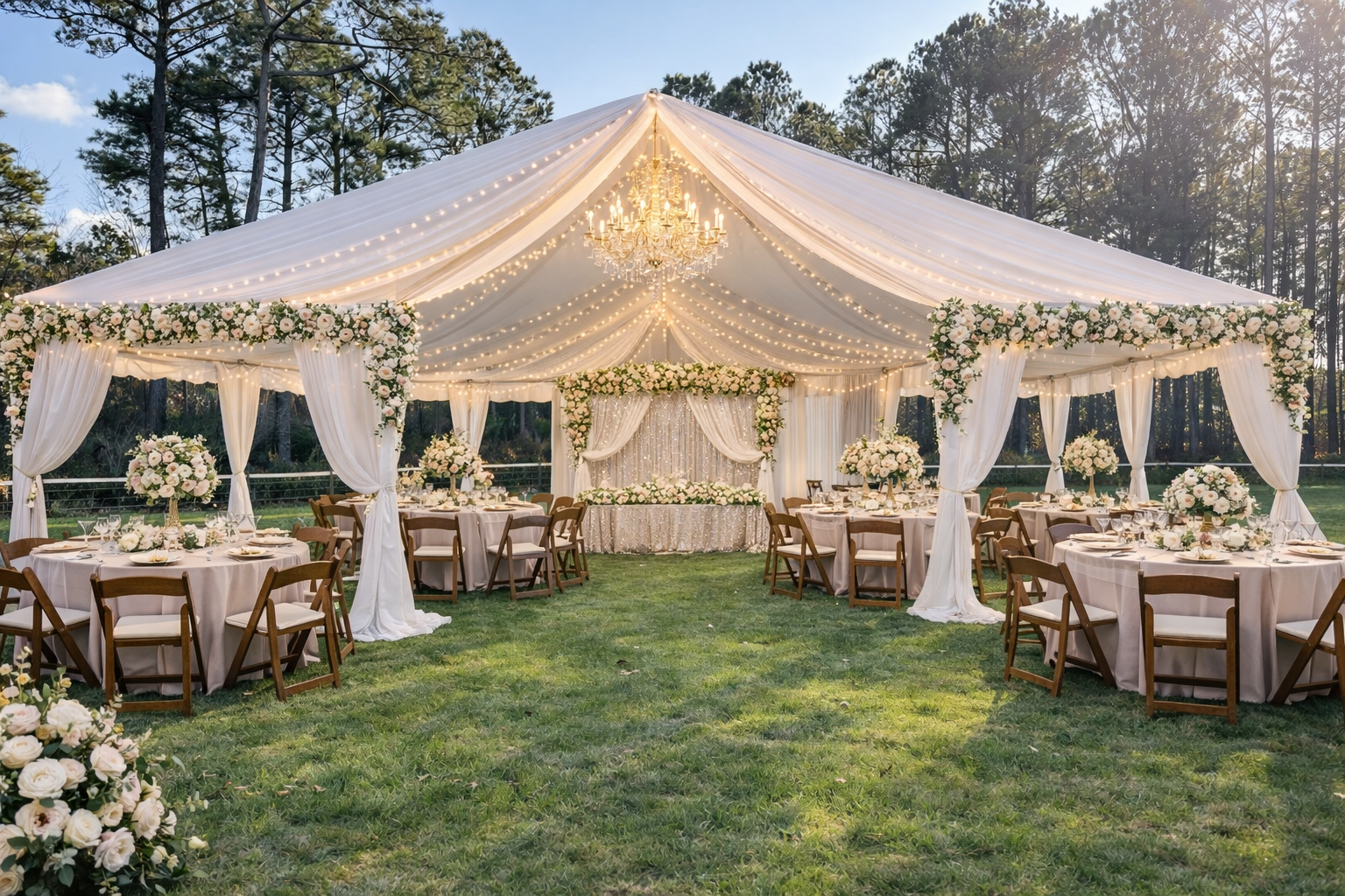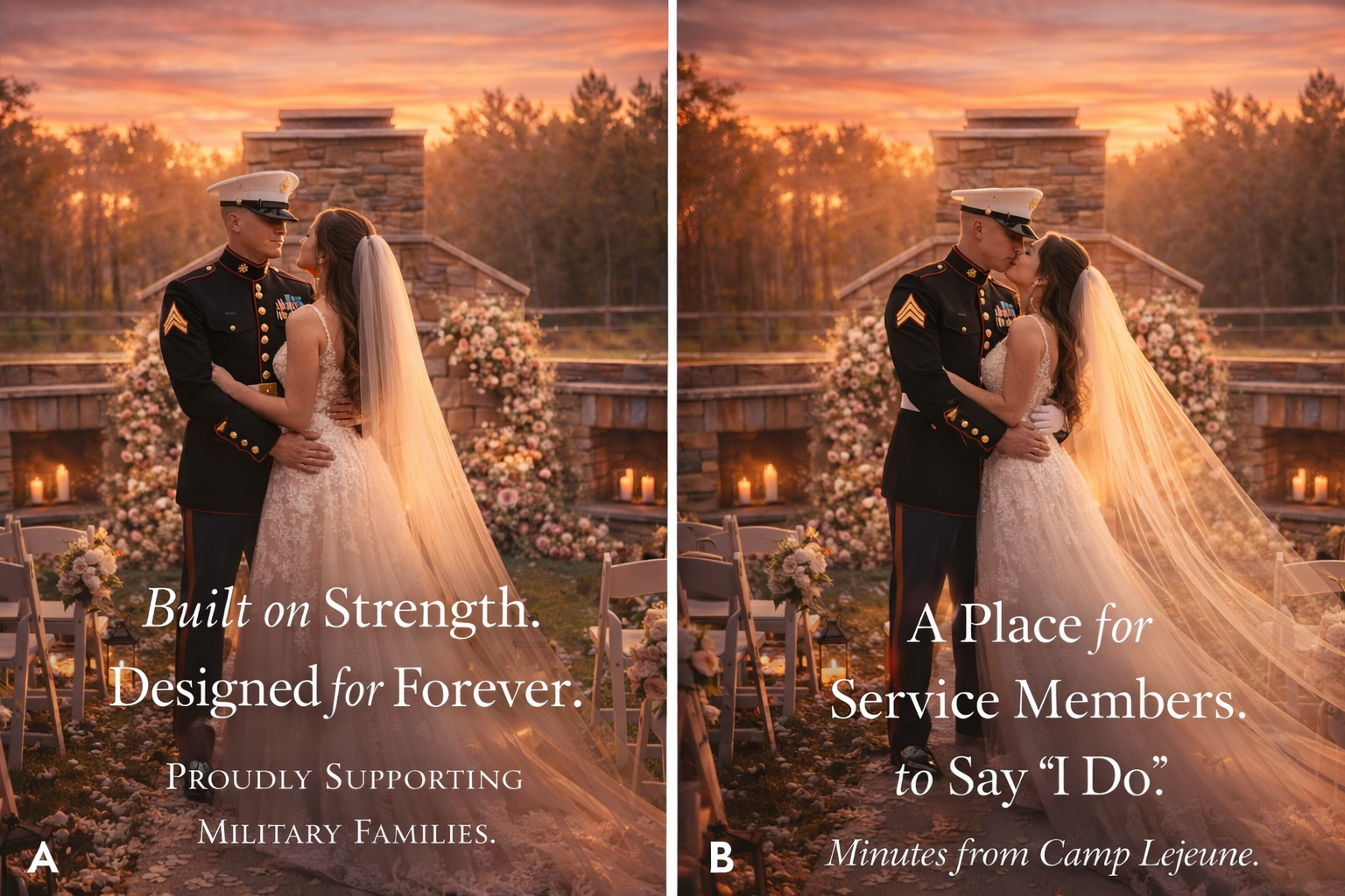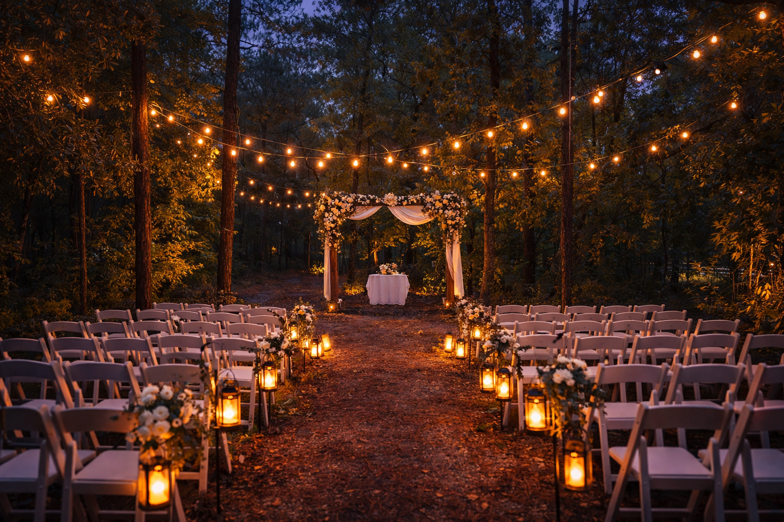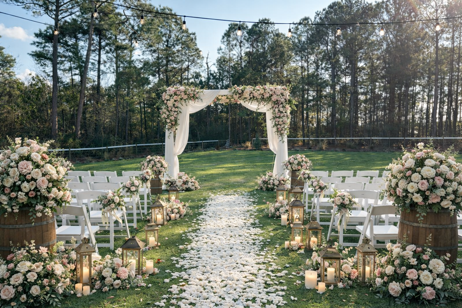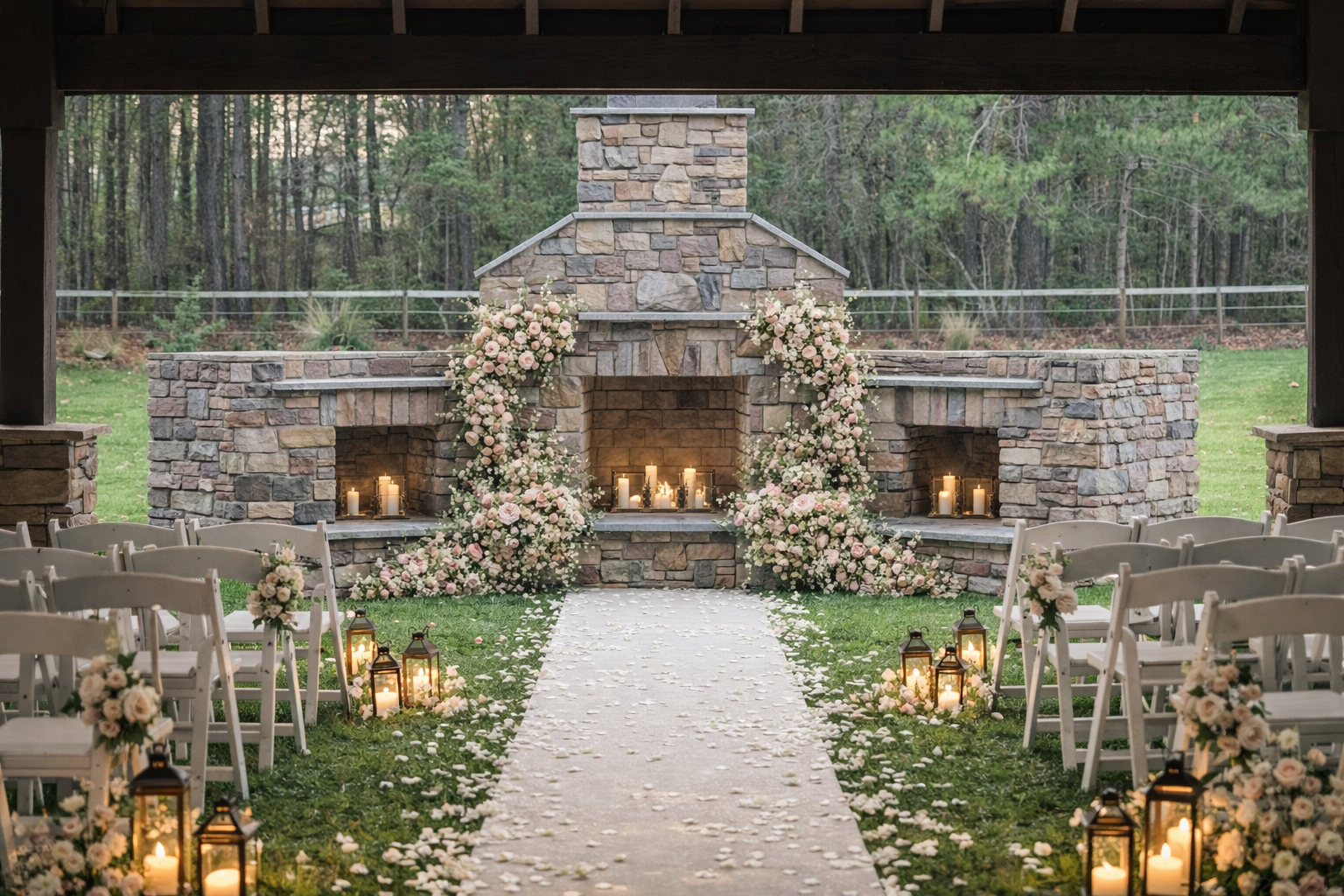 A beautiful outdoor setting surrounded by open pastures, peaceful woods, and glowing sunsets—perfect for a romantic ceremony under the open sky.
