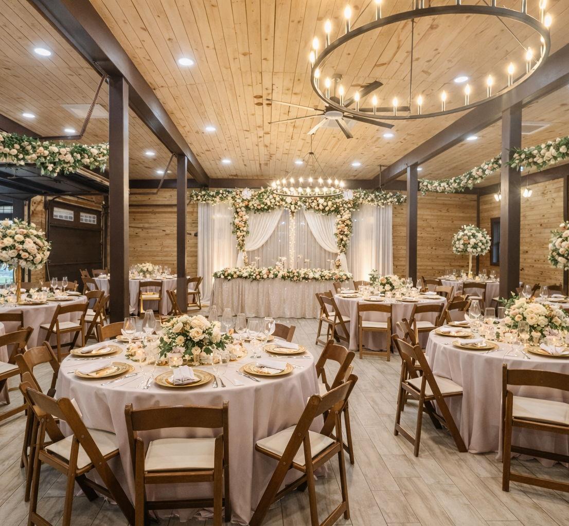 Weelcome to The Barn At Five Star Stables, a premier rustic-elegant venue where your dream wedding comes to life. Nestled in a picturesque setting, our barn offers the perfect blend of country charm and sophisticated grace for couples looking to celebrate their love in a truly unique atmosphere. We specialize in providing a stunning backdrop for ceremonies and receptions alike, offering a spacious yet intimate environment that feels both grand and welcoming. At The Barn At Five Star Stables, we are dedicated to helping you create a seamless and unforgettable celebration, ensuring that every detail of your special day is framed by the natural beauty and timeless character of our estate.