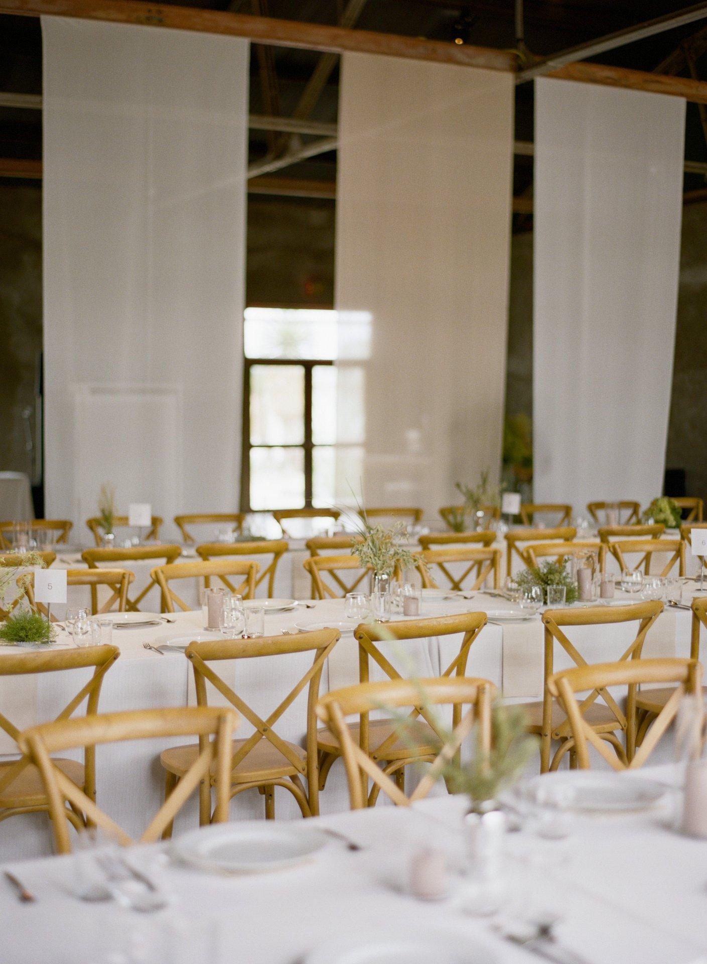 We offer in house tables & chairs as part of the venue rental fee. Linens not included.