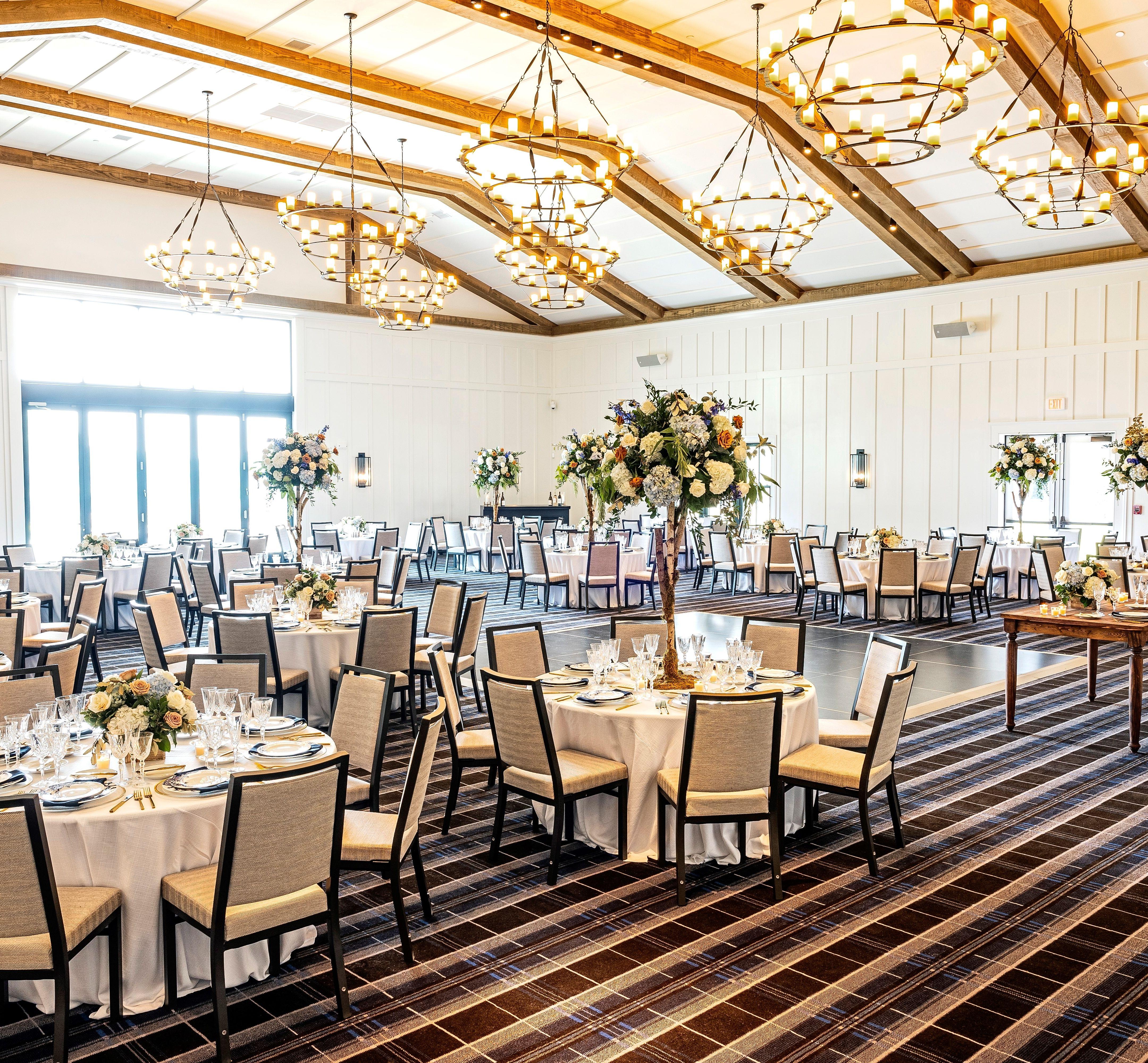 This ballroom exudes an elegant farmhouse charm with its soaring 23-foot ceilings. The attention to detail in its design creates a breathtaking atmosphere from the moment you enter.
