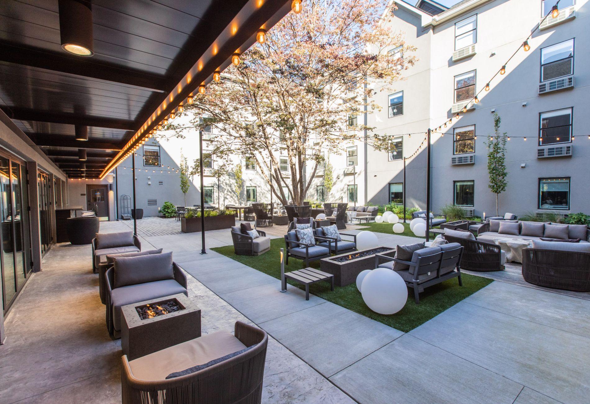 Step just beyond the lobby of the Darwin and you'll find yourself in the courtyard - with a collection of cozy fire pits and comfortable seating areas, the courtyard is a beautiful, dynamic, and malleable space capable of hosting a wide variety of events. From relaxing fireside mornings to energetic comedy nights, from soothing morning yoga sessions to curated local acoustic performances - the Darwin has everything you need to make your next event unforgettable.