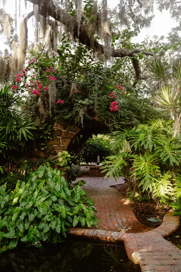 The Chapel has hosted hundreds of weddings throughout its lifetime. The stained glass windows and curved pews are the perfect setting for guests to witness your vows. Built originally in 1897 as the first town hall of Port Orange, in 1913, the building was moved and served as the Parish Hall for Grace Episcopal Church. When the church expanded in 1997, the Chapel was relocated to it’s current location here at the Estate on the Halifax.