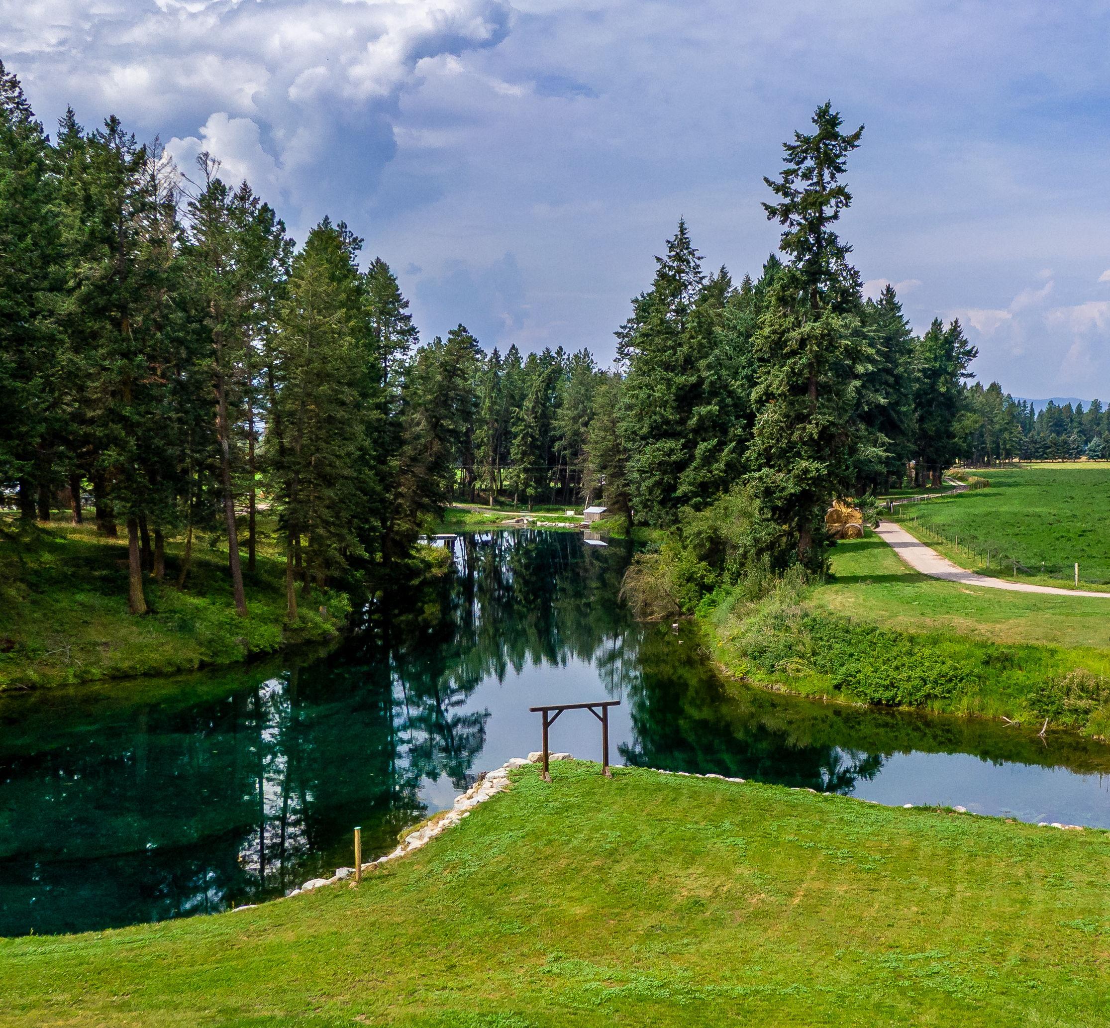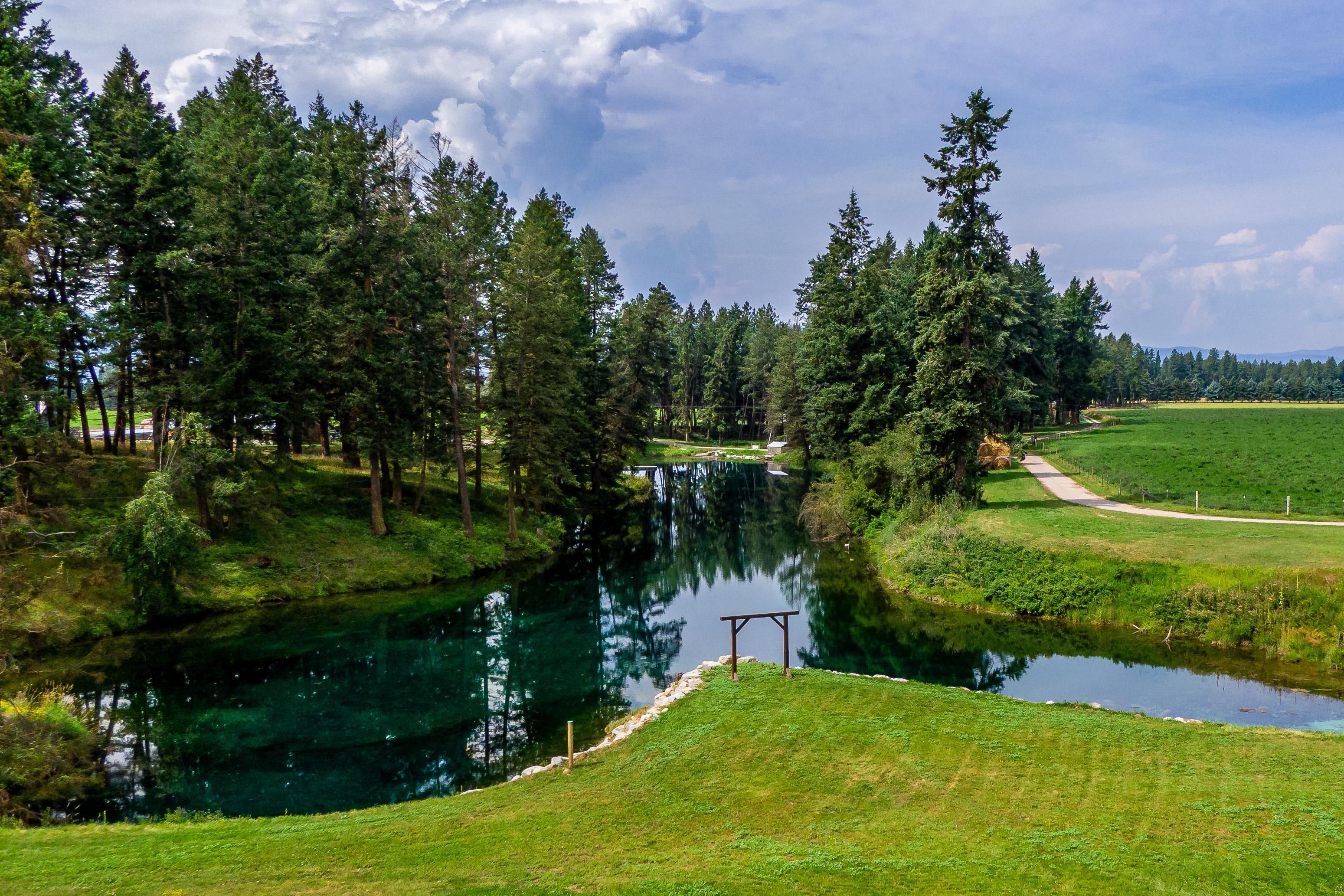 Breathtaking turquoise spring-fed backdrop surrounded by working farmland, big sky horizons, and unforgettable mountain sunsets.