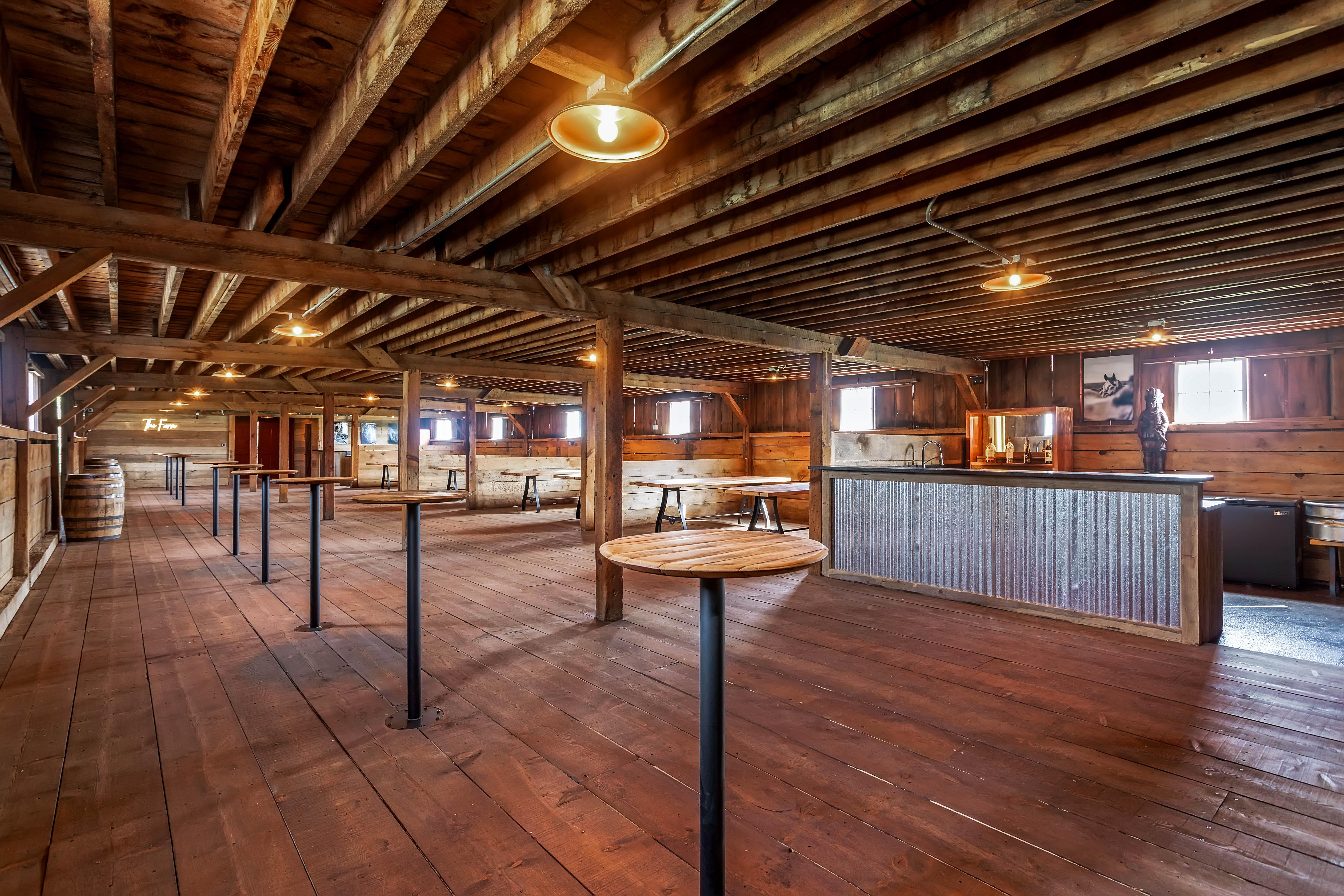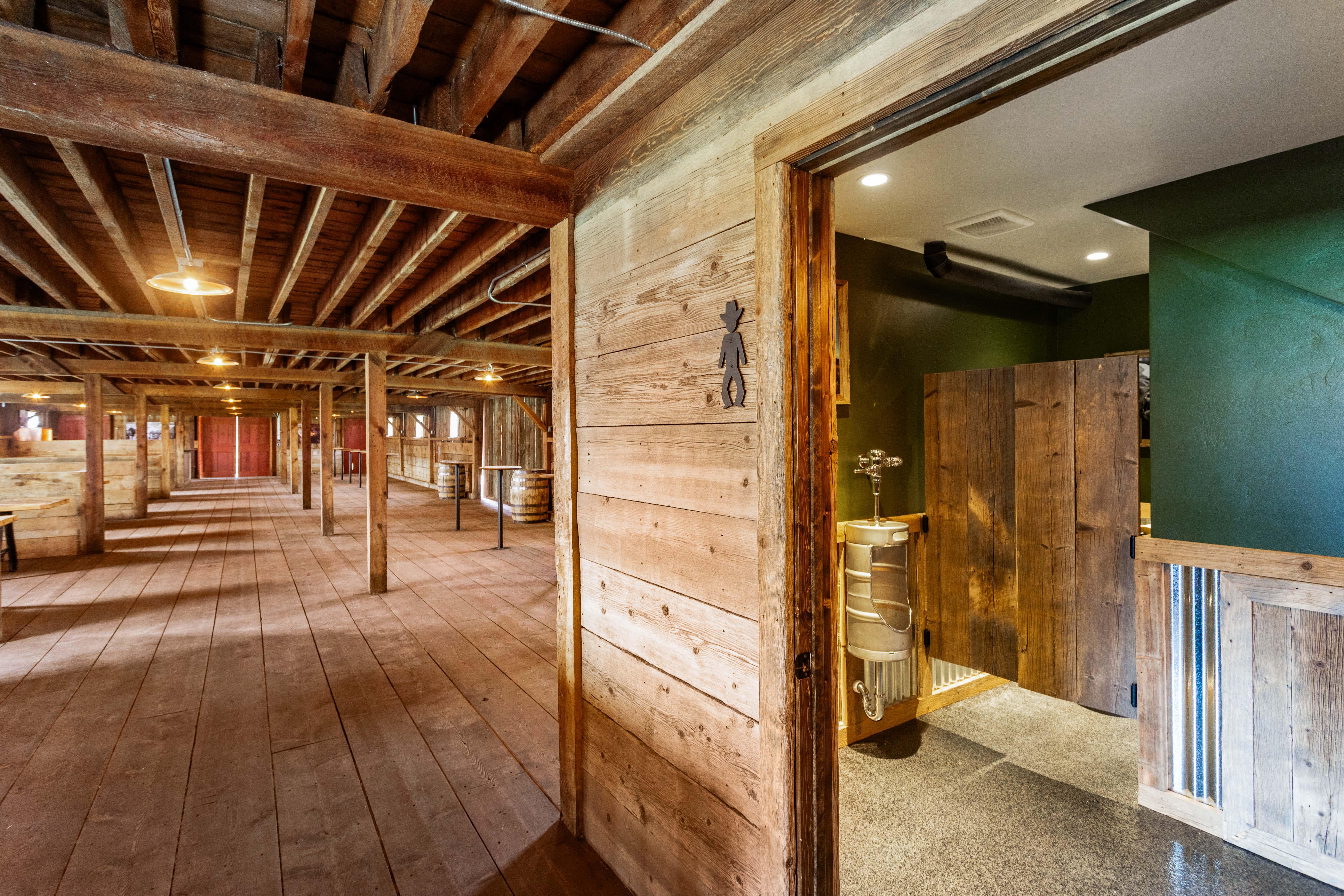 Keeping the charm of the 1903 Barn, the space includes tack rooms converted to bathrooms and livestock stalls converted to bars.