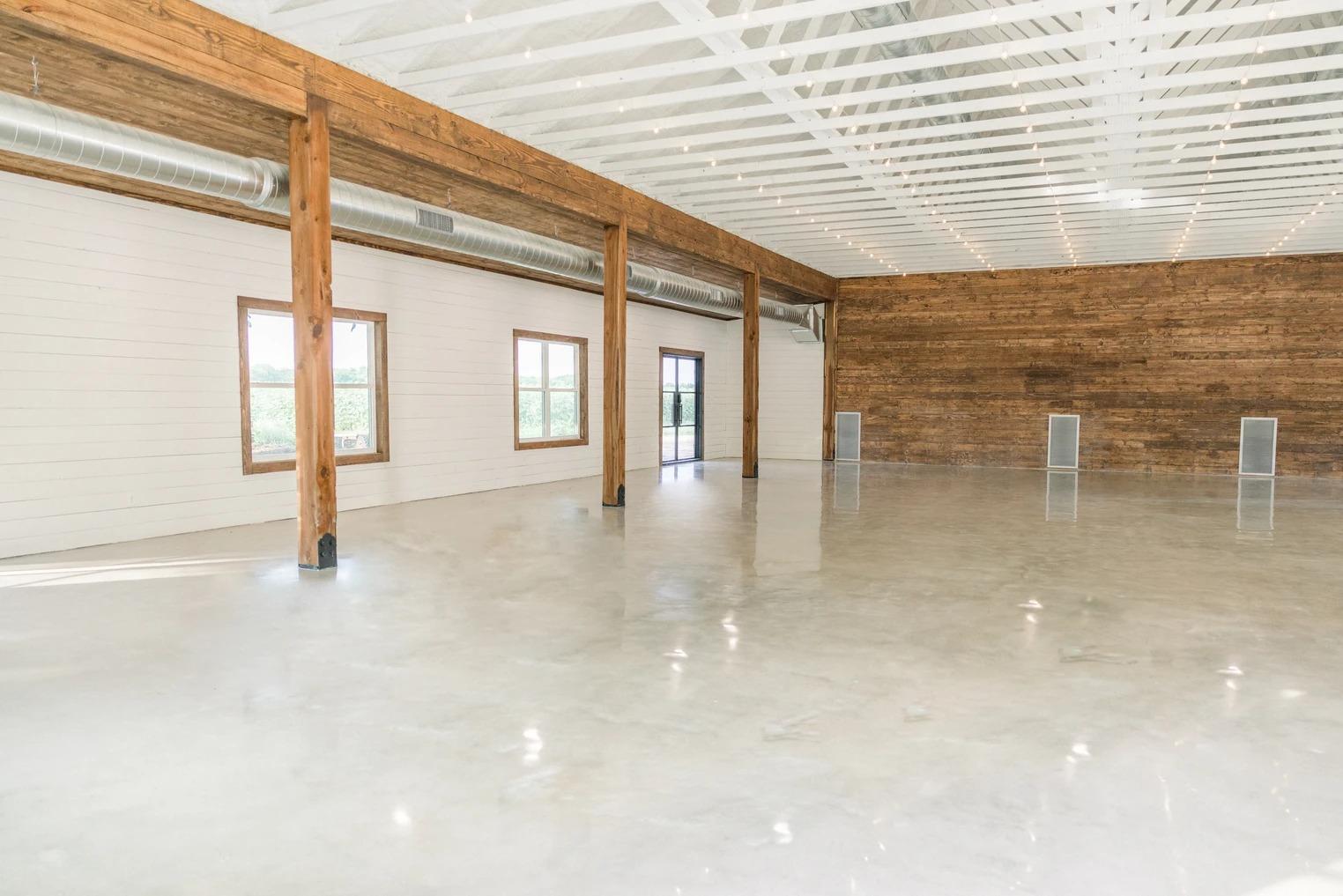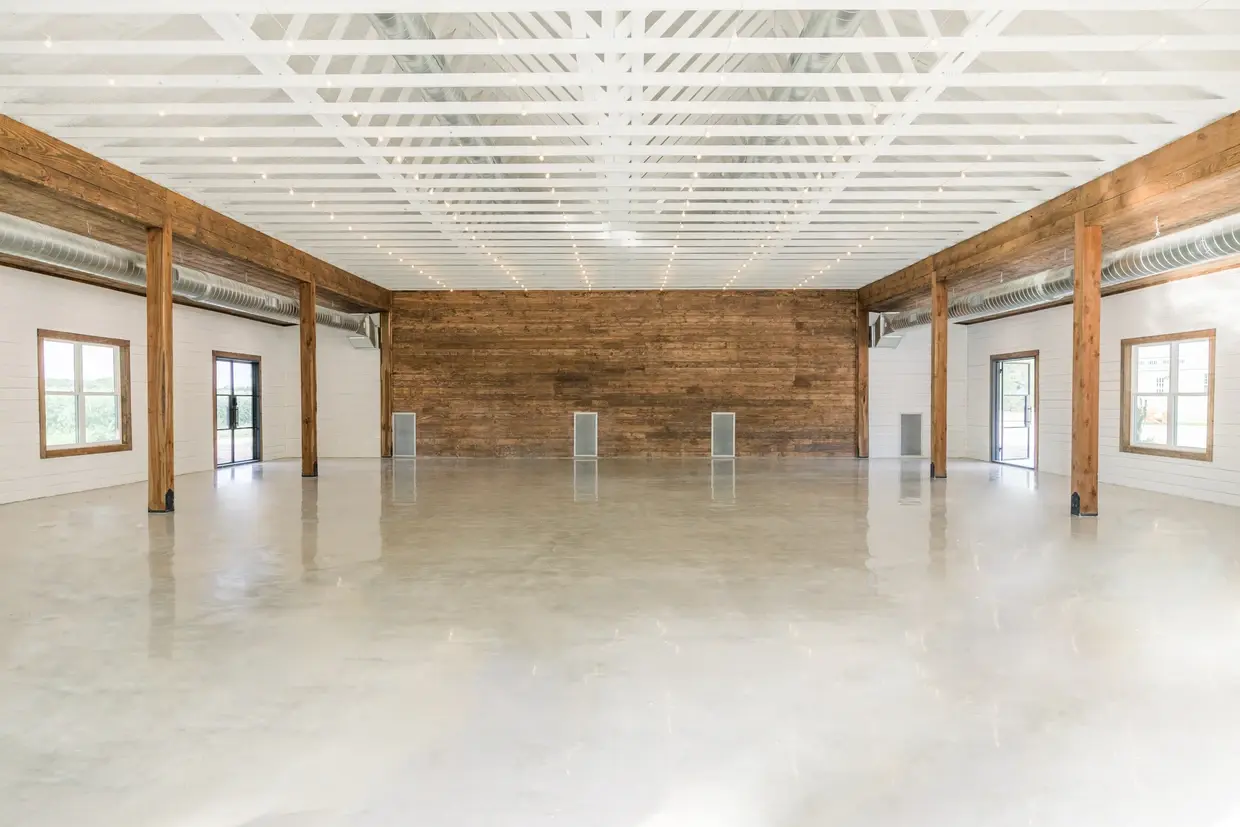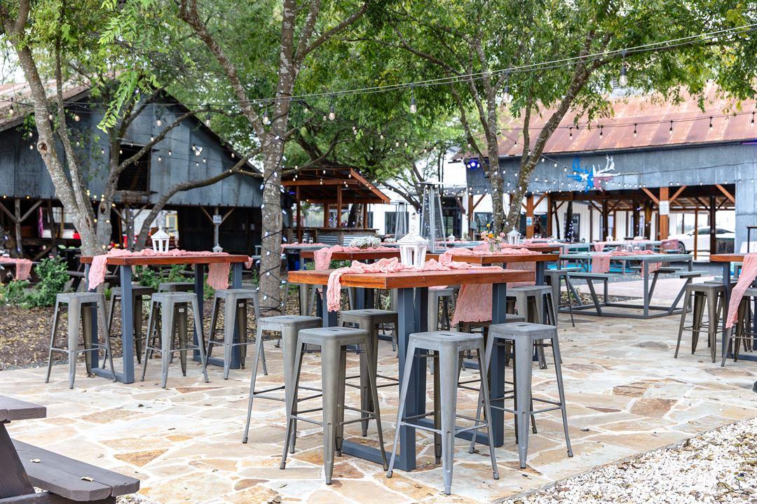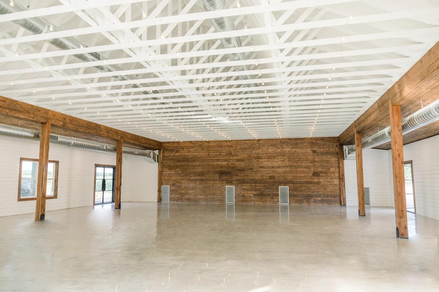 This spacious 3,000-square-foot indoor hall perfectly blends modern amenities with Texas farmhouse charm. The expansive floor plan offers a clean, rustic canvas that can be dressed up for an elegant gala or kept simple for a relaxed celebration. With climate control for year-round comfort and a layout designed for seamless flow between dining and dancing, it serves as the sophisticated heart of your reception. Whether hosting an intimate gathering or a grand party, guests will love the warm, inviting atmosphere and the stunning views of the surrounding ranch.