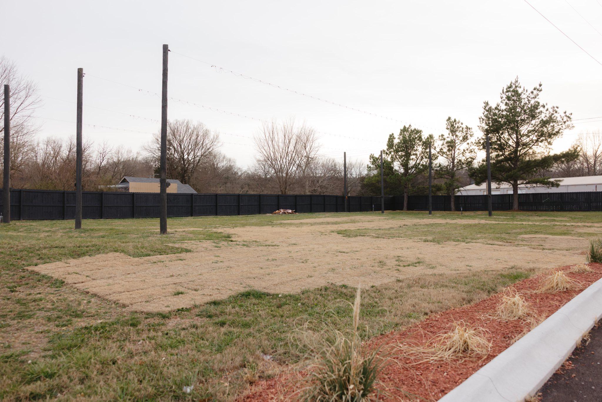 The Starlight Courtyard offers a spacious, open-air foundation for a high-energy outdoor celebration. Enclosed by a sleek black privacy fence, this expansive space features towering industrial-style poles designed for custom bistro lighting, allowing the area to be transformed into a glowing canopy as the sun sets. With its generous footprint and clean perimeter, the courtyard serves as a versatile blank slate, perfectly suited for a large-scale tented reception, a festive food truck layout, or an open-air dance floor under the stars. It is the ideal choice for couples who want the freedom of an outdoor setting combined with the privacy and structured layout of a modern event space.
