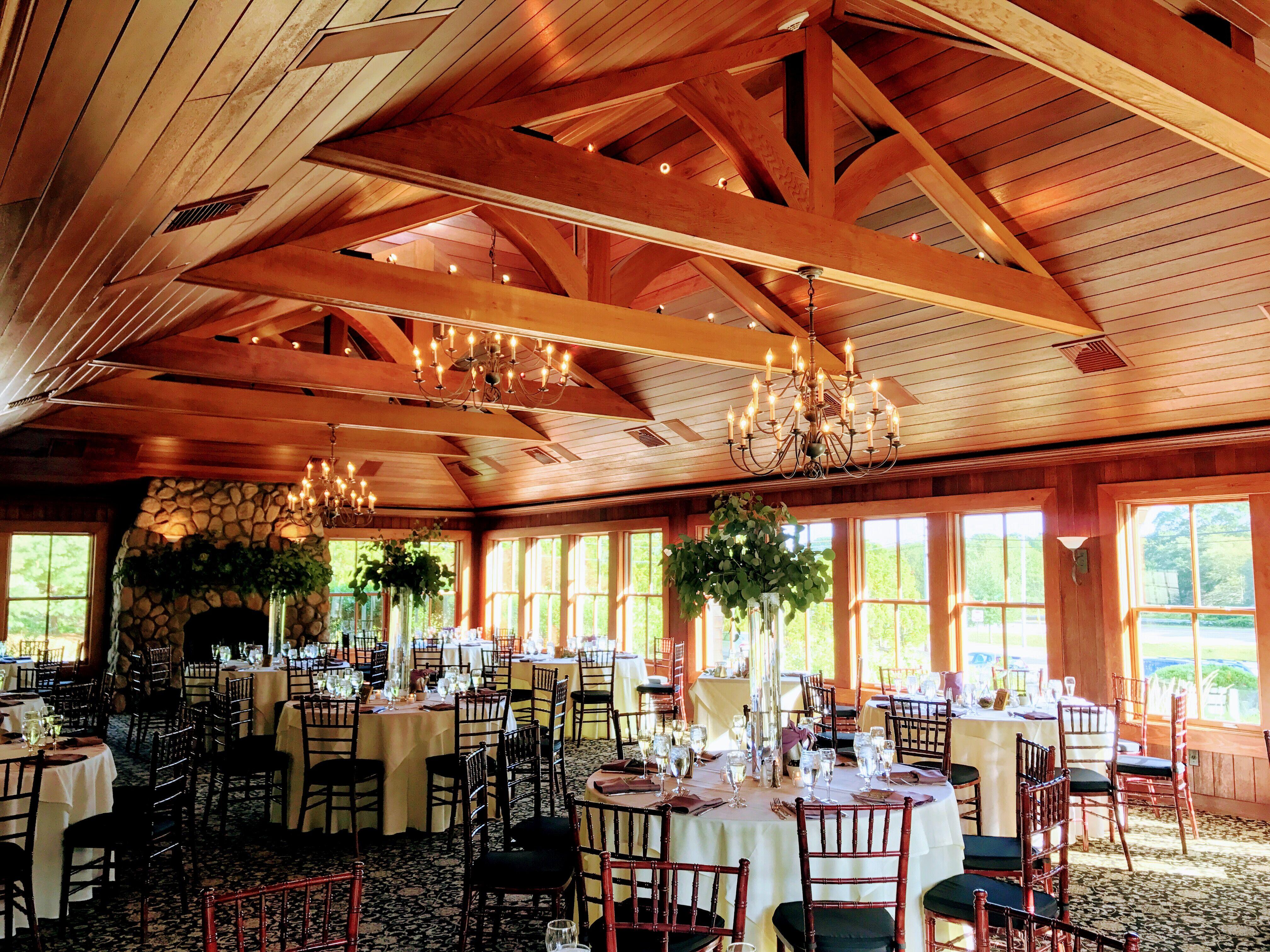 Located in scenic South County, The Haversham House is a quintessential New England countryside estate that blends rustic charm with timeless elegance. The interior is defined by stunning exposed beam ceilings and warm wood finishes, creating an inviting, soulful atmosphere for a romantic celebration. Beyond the glass, the venue features beautifully manicured, park-like grounds that offer a picturesque backdrop for ceremonies or golden-hour photos. Whether you are hosting an intimate wedding shower or a sophisticated reception, this space provides a warm, refined setting where every detail feels curated for a lifetime of memories.