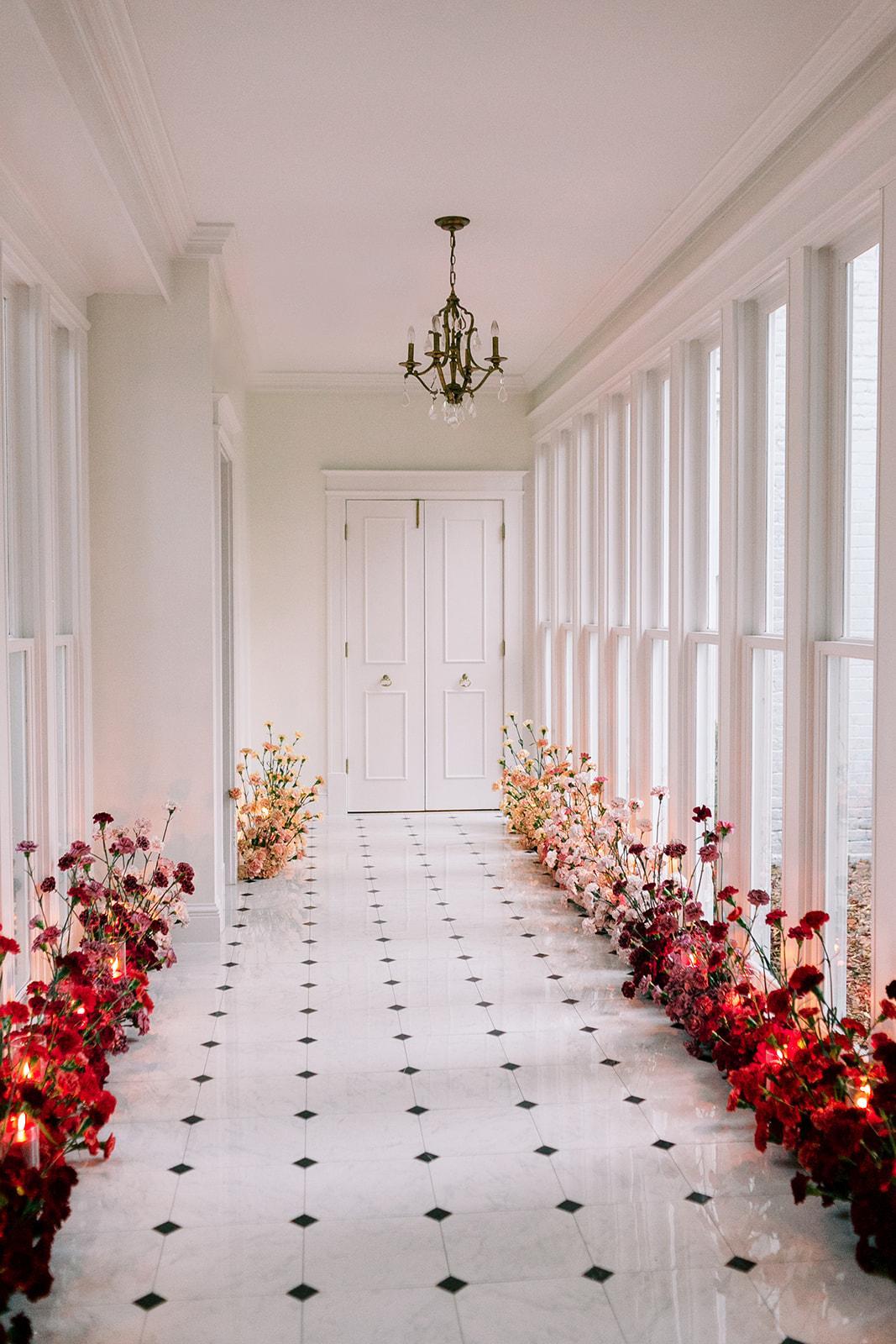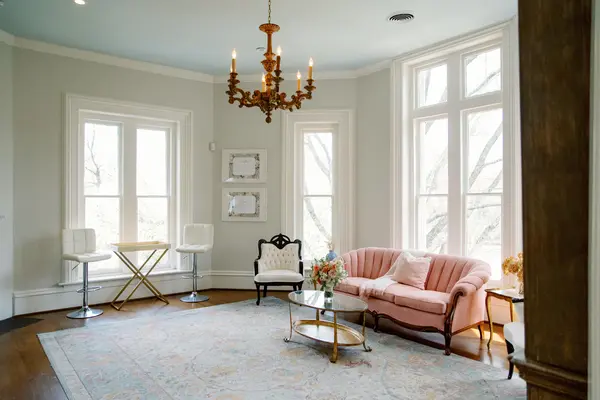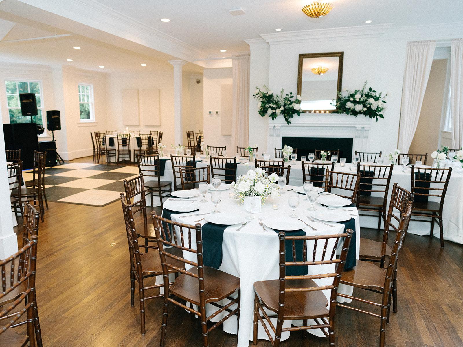 The Hall connects the original McAlister House with the original Leftwich House. Floor-to-ceiling windows fill the space with natural light, while the classic checkered floor adds a timeless architectural detail that immediately draws guests in. Whether serving as a transition between event spaces, a cocktail hour setting, or a striking photography location, The Hall creates a graceful connection between the home’s historic rooms.
