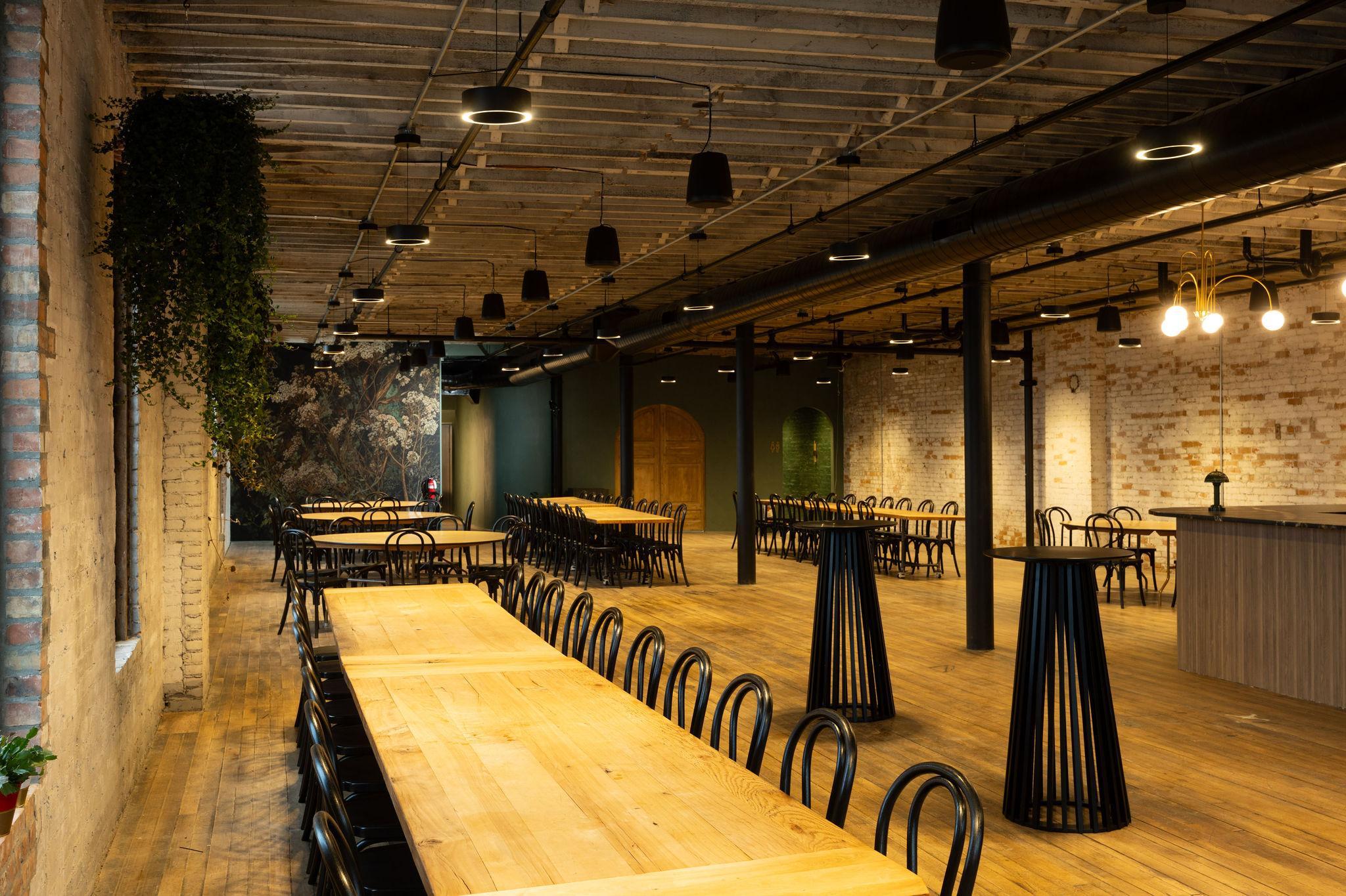 Friday/Saturday/Sunday - 12 hours of space rental (including set up and tear down time) (6) - 10 ft modern wood tables (11) - 72 inch round Tables Black Bentwood chairs for up to 150 guests Dimmable Lighting throughout venue 75 parking spaces at the venue ADA Accessibility On-site Venue Manager AV equipment including (2) 65-inch portable TV Screens, wireless streaming system and (2) wireless mics Fully equipped catering room High-end custom built bar Ice Machine Max Capacity of 160 guests