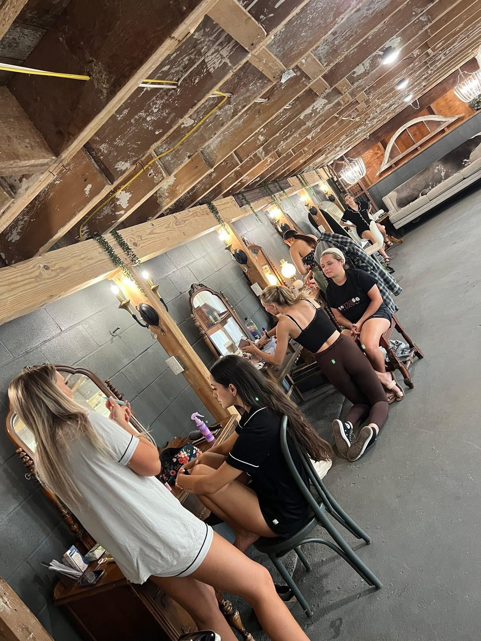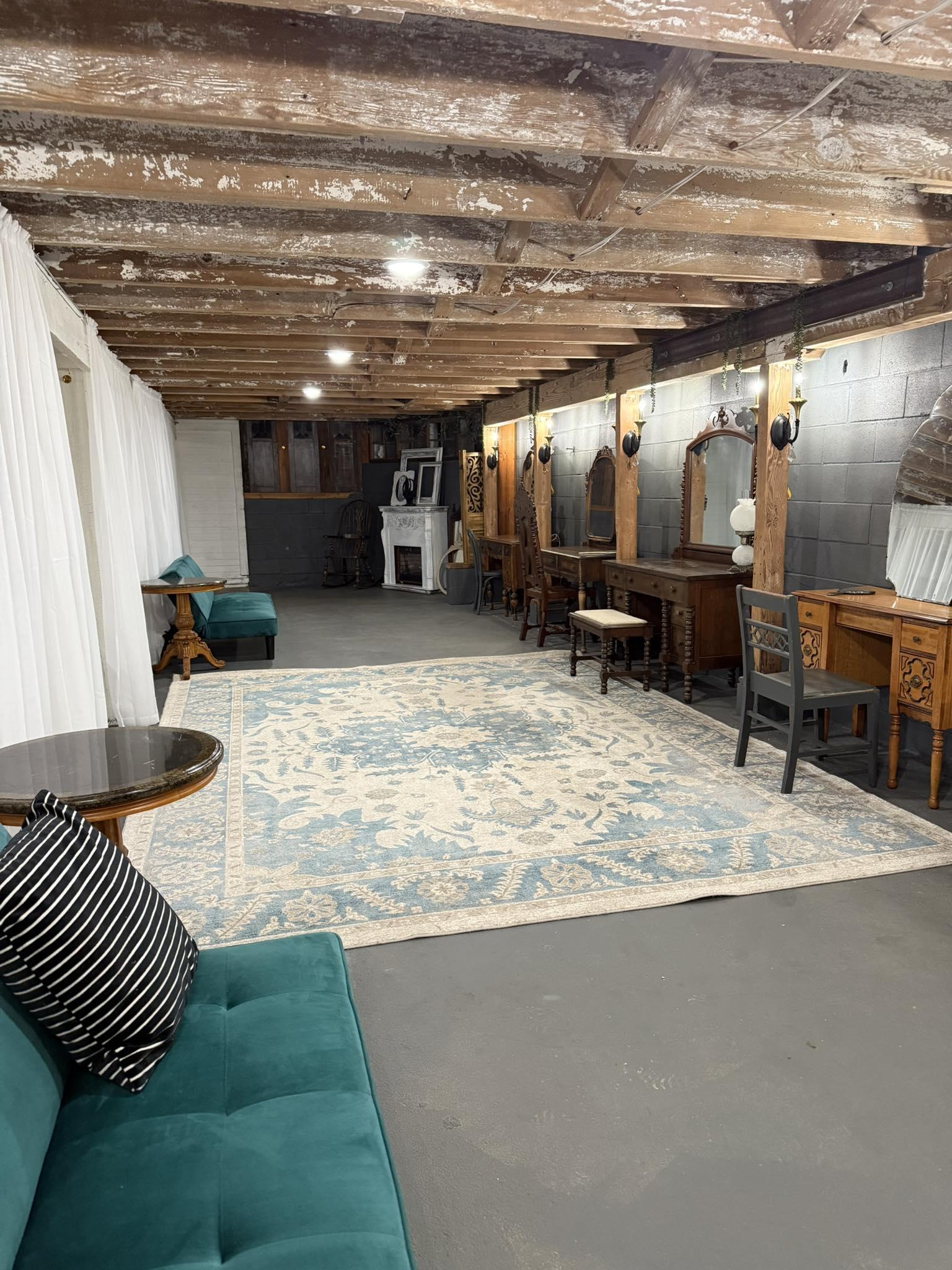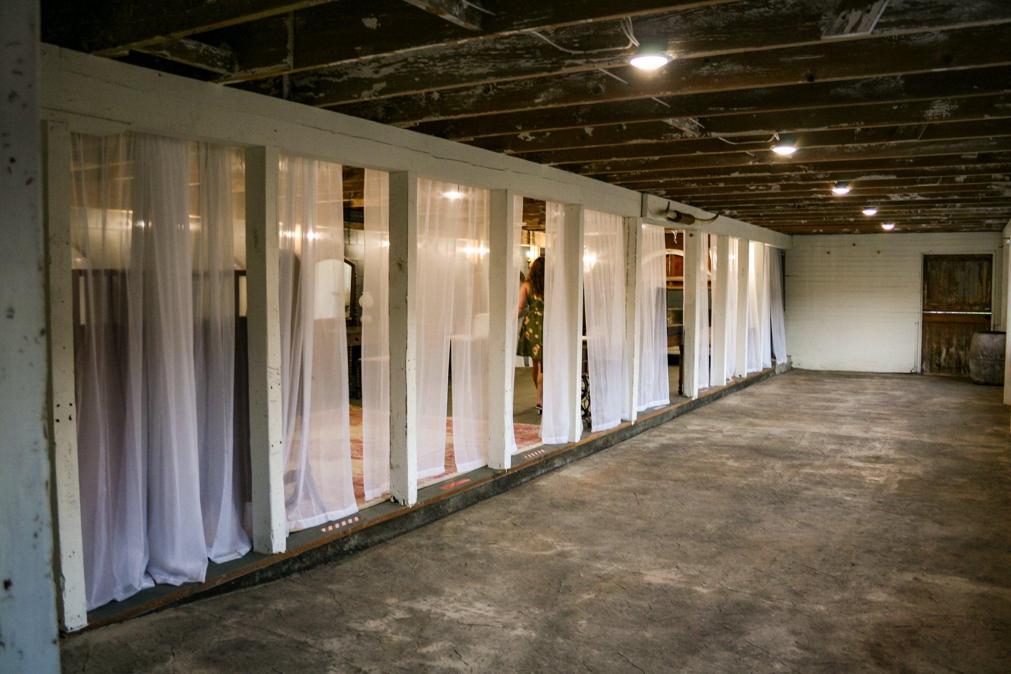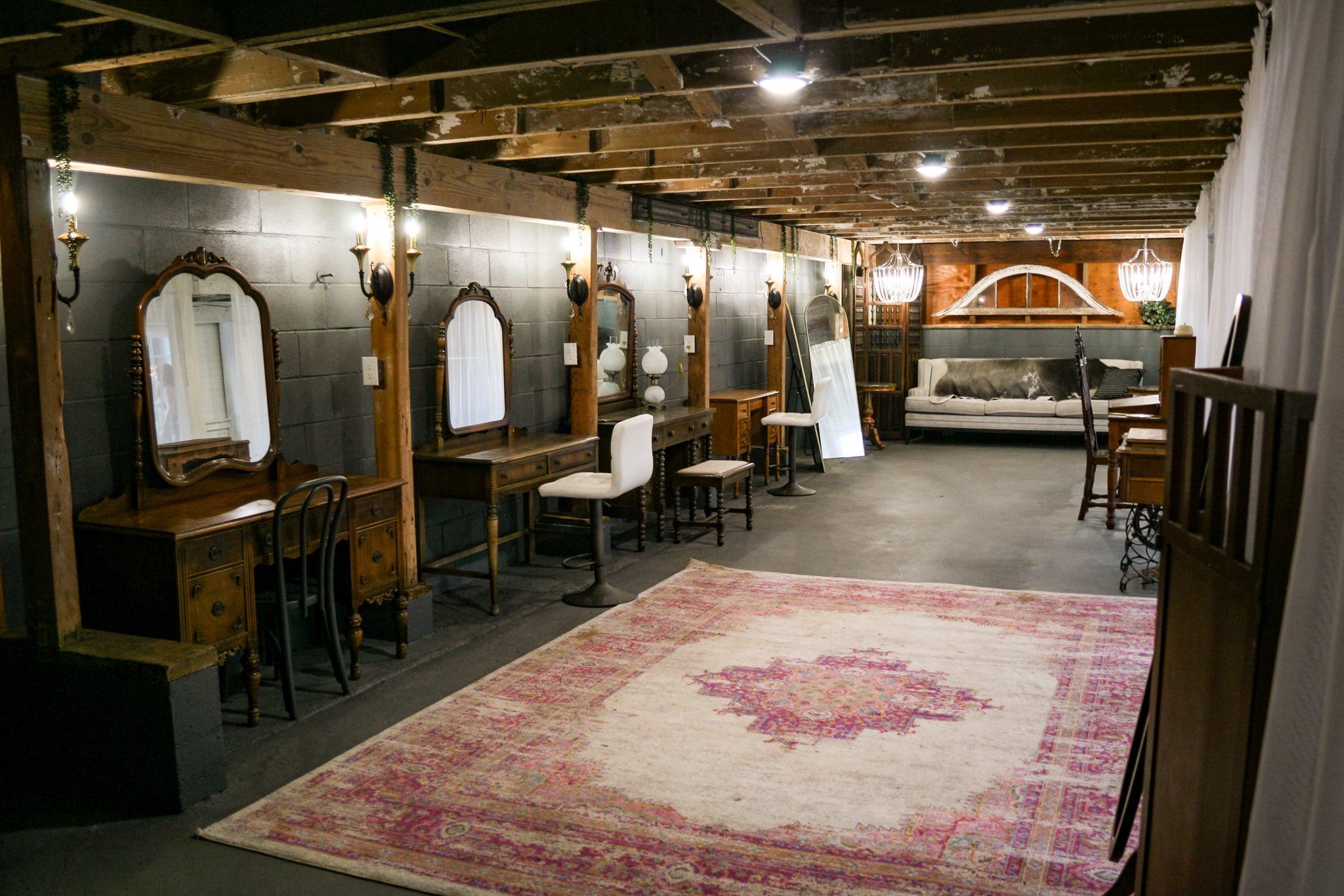 - Dressing tables and mirrors - Vintage couch and chairs - Full length mirrors - Hooks to hang dresses - Curtains for privacy