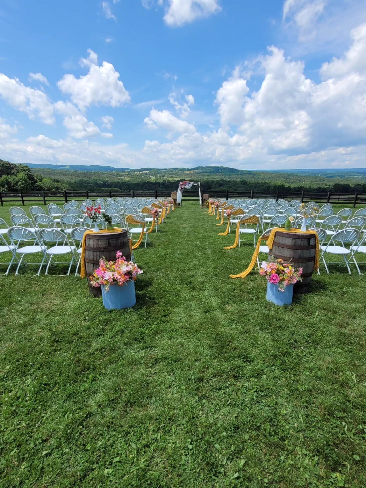 Escape to The Nunda Ranch, a premier 50-acre horse ranch offering an "elevated rustic" wedding experience just miles from Letchworth State Park. Whether you envision a sunset ceremony overlooking the rolling hills of Livingston County or a lively reception in our beautifully remodeled barn, this scenic property provides a breathtaking backdrop for every "I do." With on-site equestrian activities, a luxury vacation home featuring an indoor pool, and panoramic mountain views, we offer more than just a venue—we provide a private, country-style retreat for your entire wedding weekend.
