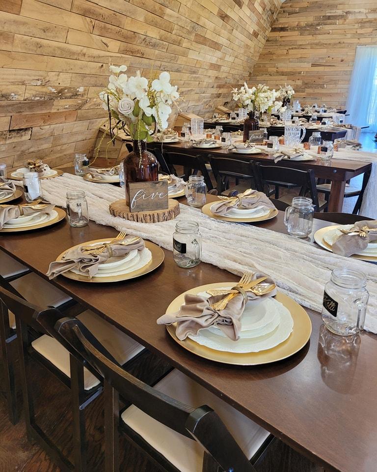 Celebrate your love across a versatile 50-acre landscape designed for seamless event flow. Our newly remodeled area barn features an open floor plan and rustic charm, perfect for both sheltered ceremonies and high-energy receptions. Step outside to discover multiple manicured lawn sites for open-air vows with sweeping hillside views. For cocktail hour, guests can gather on the expansive wooden balcony of the Ranch Home to enjoy panoramic vistas of the property. The site also includes a luxury four-bedroom home with a spa and indoor pool, ideal for wedding party preparations.