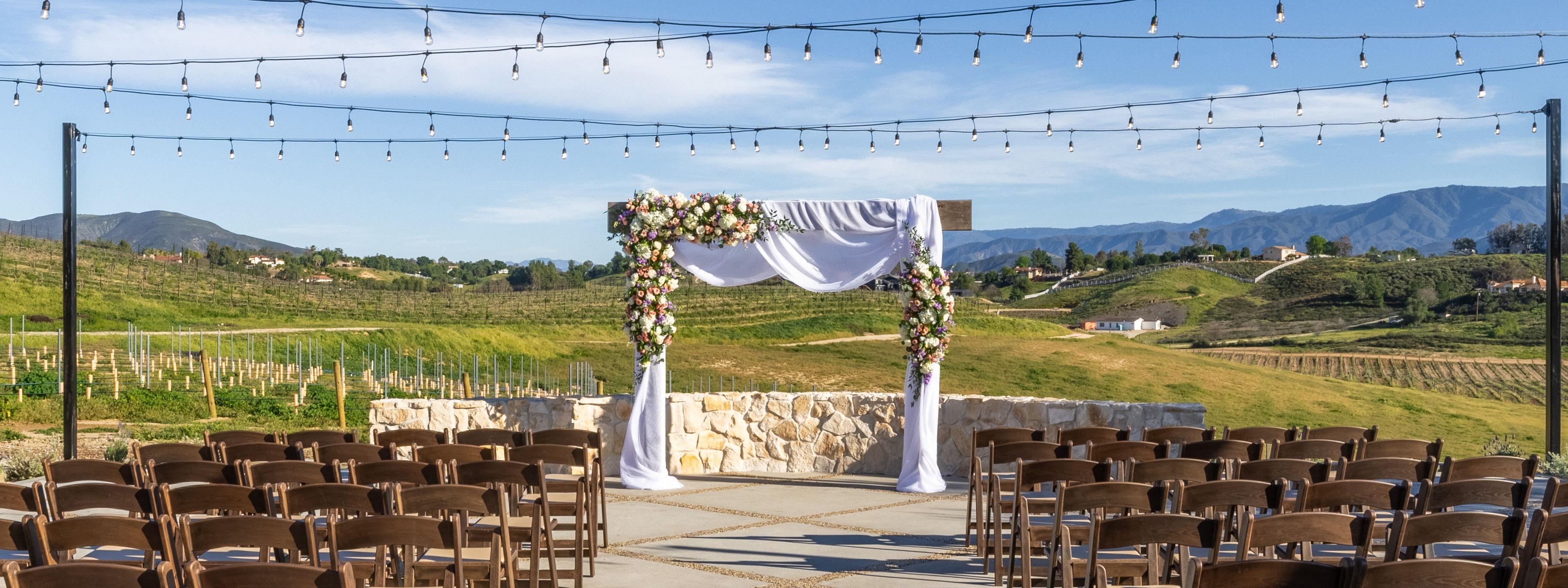 -Romantic bistro lighting -Space heaters -Seating areas for guests to mingle -Extraordinary views of the meadow and expanse of the foothills