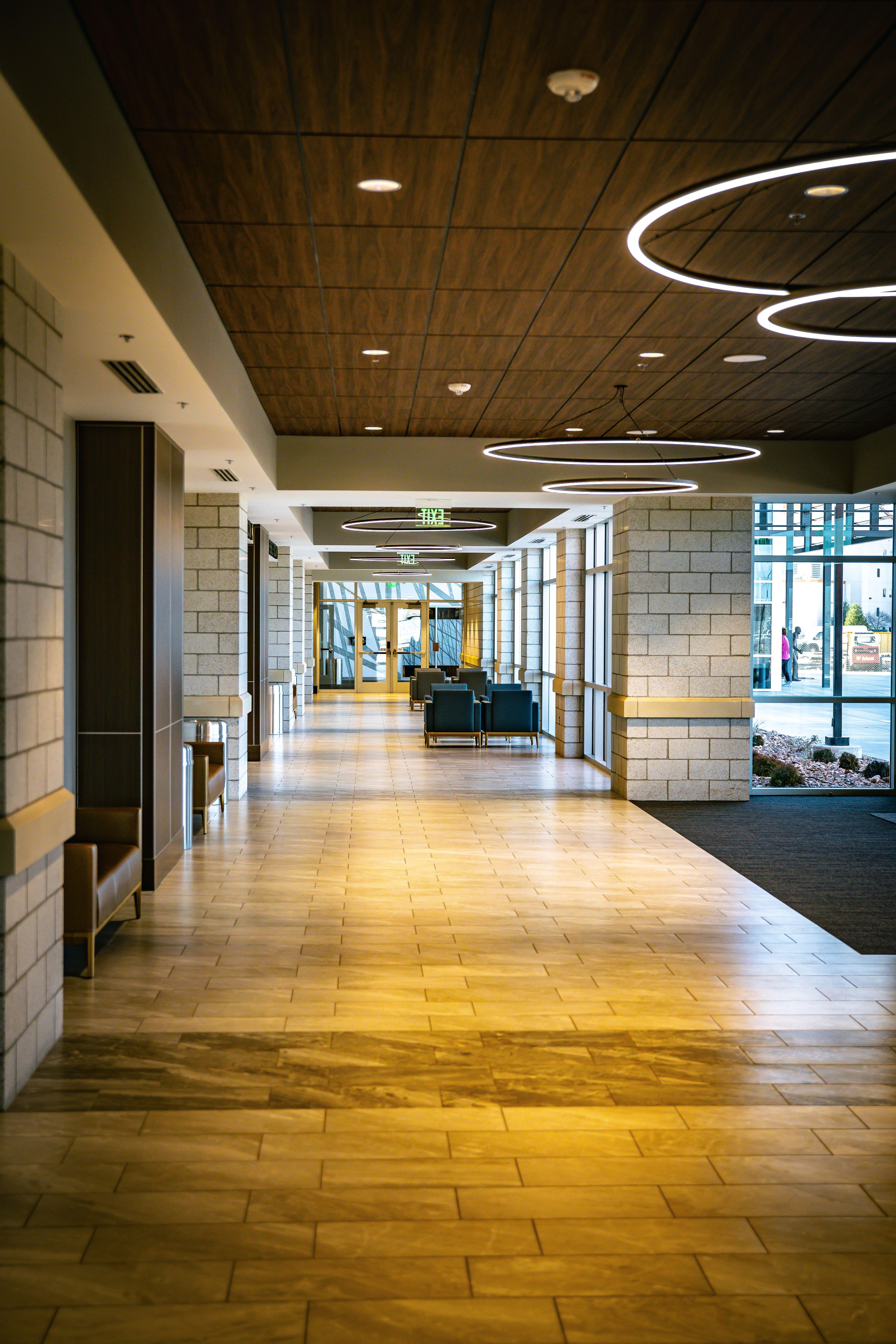 The foyer offers a welcoming first impression with a clean, modern design, warm wood accents, and large windows that fill the space with natural light. This versatile area is perfect for guest arrival, cocktail hour, or a comfortable gathering space, creating a smooth and inviting transition into the main event.