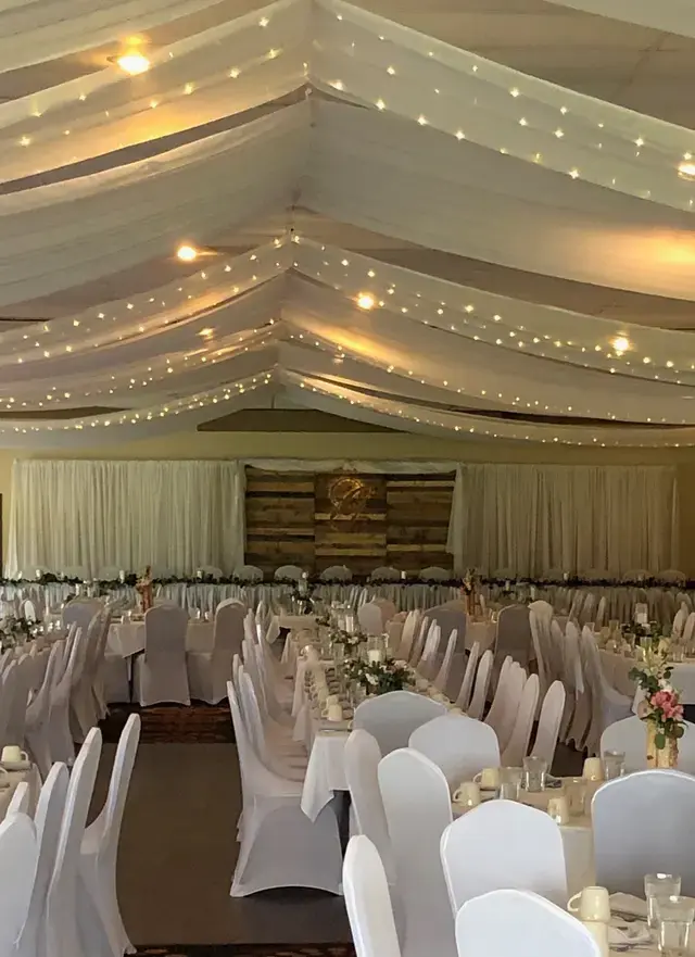 Features a permanent 16' x 28' dance floor, making it ideal for wedding receptions and parties.