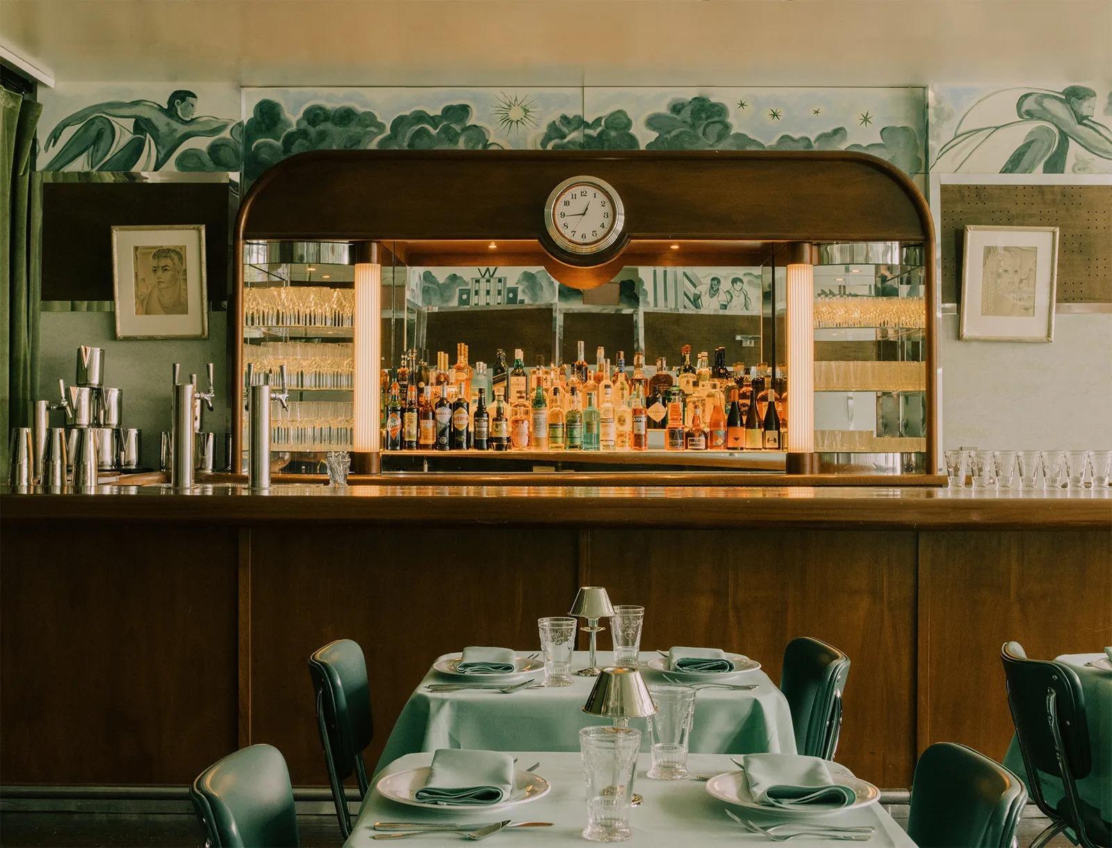 This private event space is a glamorous homage to mid-century design, styled like an upscale, Art Deco diner. Featuring a sophisticated mint-green palette, wood veneer, and sleek chrome details, the room provides a distinctively cinematic setting for your wedding celebration. The flexible layout can accommodate a beautiful seated reception or a chic cocktail-style party. This light-filled floor is perfect for a stylish rehearsal dinner, a post-ceremony celebration, or a fully customized welcome event, blending old-world charm with Detroit's dynamic spirit. It includes dedicated space for guests to mingle and dine with elegance and privacy.