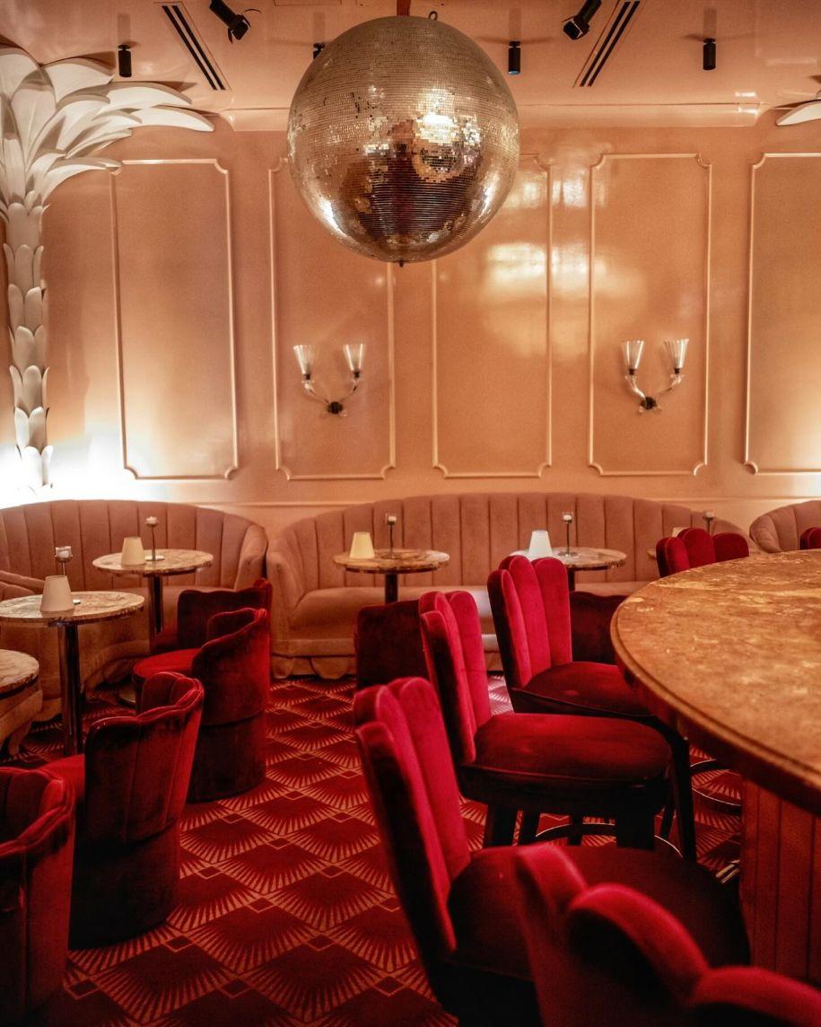 Tucked away behind a plush velvet curtain, the Candy Bar is a decadent, semi-private cocktail lounge. A tiny pink palace of a watering hole, the design features tufted pink banquettes, crimson velvet seating, and a shimmering, vintage Murano glass chandelier overhead. The sparkling disco ball adds a playful, intimate energy. This iconic, jewel-box space is perfect for a truly memorable welcome party, a celebratory bridal shower brunch, or an exclusive after-party. It offers an intimate, highly photogenic setting steeped in Old World elegance, perfect for couples seeking a unique, high-fashion vibe.