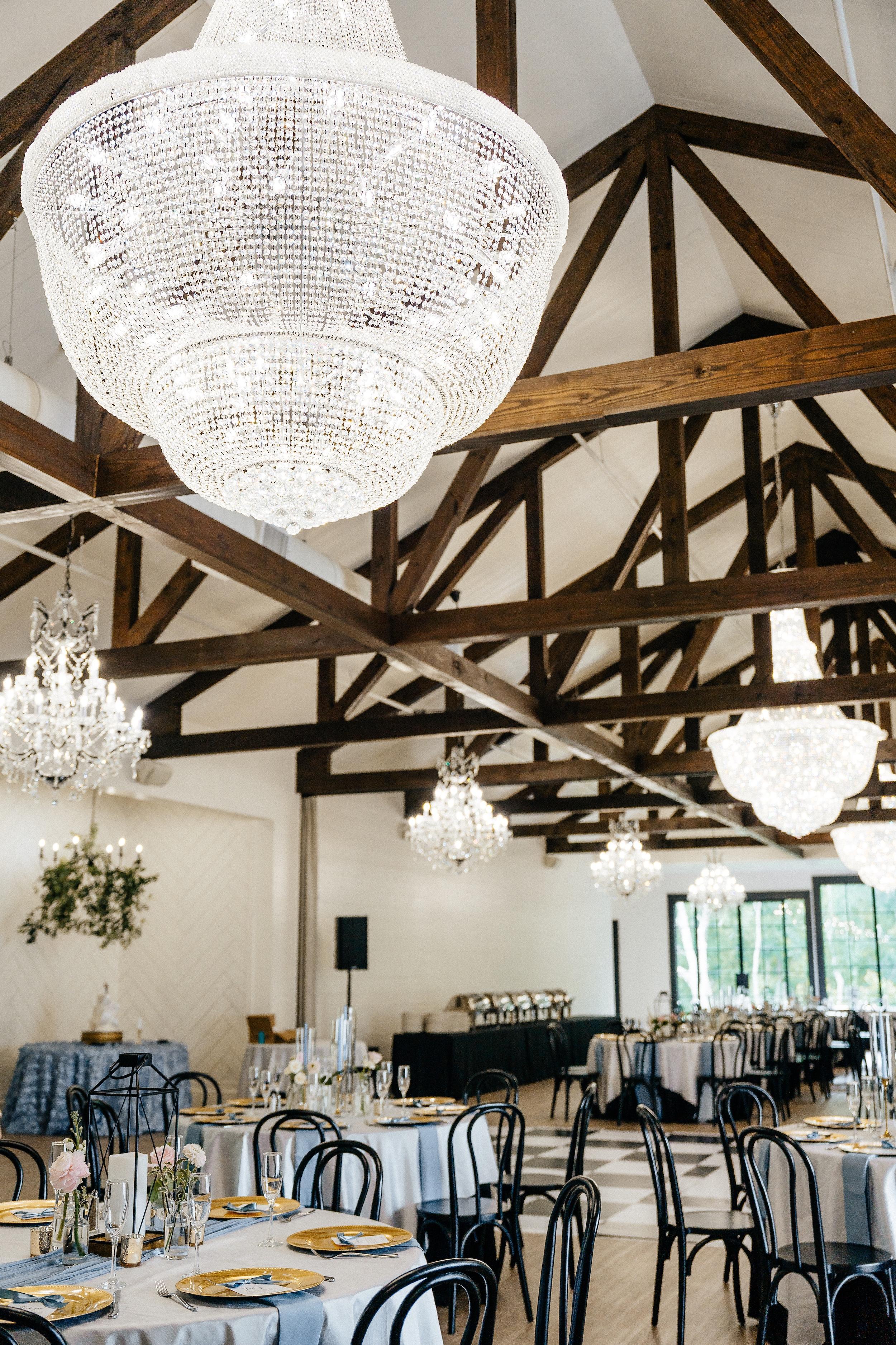 Experience a seamless blend of modern sophistication and timeless rustic charm at this breathtaking riverside estate. The journey begins in luxurious, dedicated preparation suites—featuring a bright, airy bridal lounge with elegant mirrored accents and a moody, refined groom’s quarters with custom built-in cabinetry. For the ceremony, a majestic open-air timber pavilion offers a scenic backdrop of lush greenery, anchored by a grand crystal chandelier. The celebration continues in a stunning black-barn reception hall, where soaring vaulted ceilings, exposed wooden trusses, and floor-to-ceiling windows create an atmosphere of pure lakeside luxury.