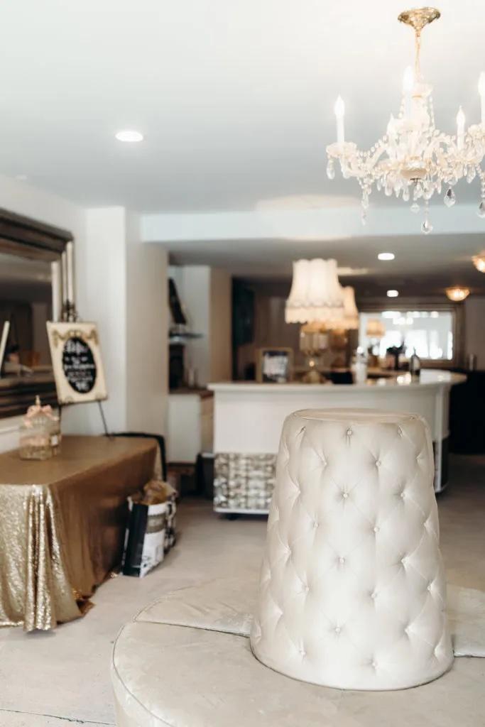 Our cocktail lounge is the perfect transition space between the chapel and reception, offering a stylish and inviting atmosphere for guests to mingle. Featuring a stunning 12-foot curved bar, ample room for conversation, and seamless access to our charming secret veranda, this space blends elegance with comfort. Whether sipping handcrafted cocktails or enjoying the coastal breeze outside, it’s the ideal spot to celebrate before the reception begins.