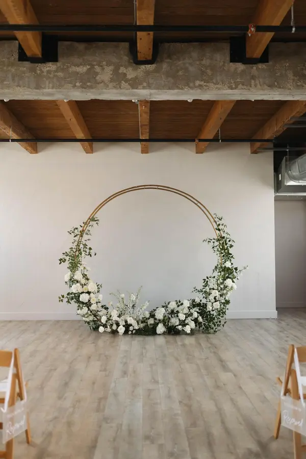 As soon as you step into the room, you can immediately envision yourself walking down the aisle towards our organic feature wall. This space has retained the original building's brick coloring which is balanced out by the neutral wood-tones of our floors and the walls of the bar. Windows facing East and West promises beautiful natural lighting for as long as the Sun is up. For our winter weddings, we dim the lighting to ensure your space is intimate and romantic as you would like.