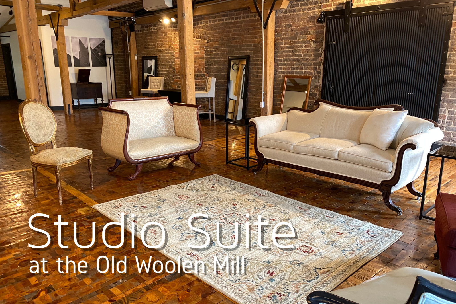 The Café can accommodate smaller parties of up to 20 guests or those requiring wheelchair or elderly accessibility. This lower level suite also conveniently connects directly to the Weaver’s Room and frequently serves as a groom’s suite and/or bar area during larger events. Room has audio and video capabilities. The Café can be added to a Weaver’s Room rental for $300 or combined with The Studio Suite on a Weaver’s Room rental for $500 as a bride suite and groom suite pairing.