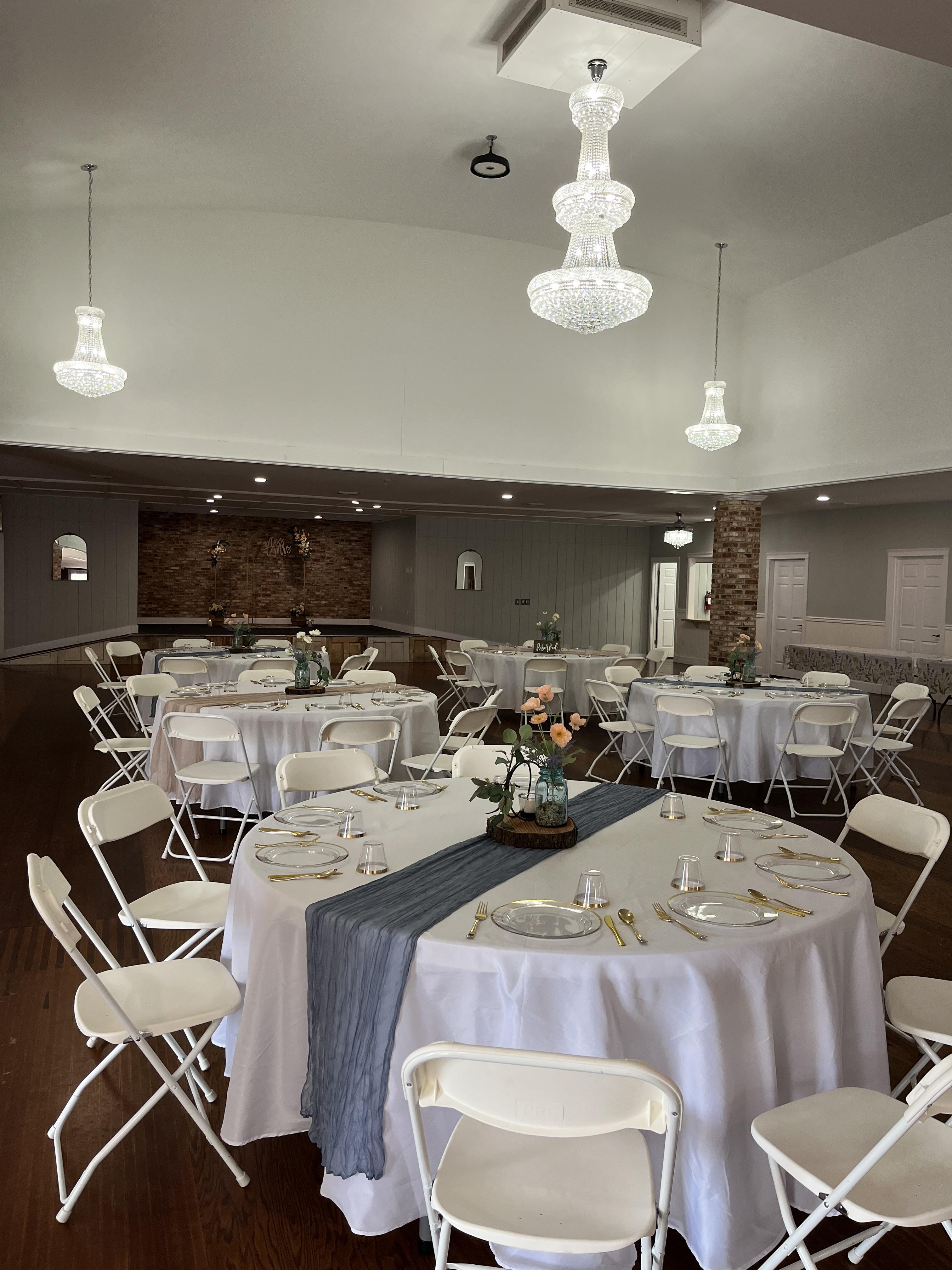 West Side Ballroom is a spacious wedding venue that can accommodate up to 300 guests. We include tables and chairs. We have a bar area, kitchen, stage, bride's room, and groom's room for you to use during your wedding! We offer 3-day rentals for weddings. Our venue holds a lot of history! It used to be a place for people to go line-dancing, was a bowling alley, and a flea market. We kept the bowling alley floors to bring some history and charm to the Ballroom! We renovated and updated other aspects to bring it back to life! We offer decoration packages- we fully set up and style whatever decorations are rented- or you are welcome to bring your own to set up. You can do whatever you can envision with the space. We do not require specific caterers- our only requirement is that you use one of our pre-approved bartenders. Recommendations can be given for vendors you may be looking! Check out our Facebook page for more info!!
