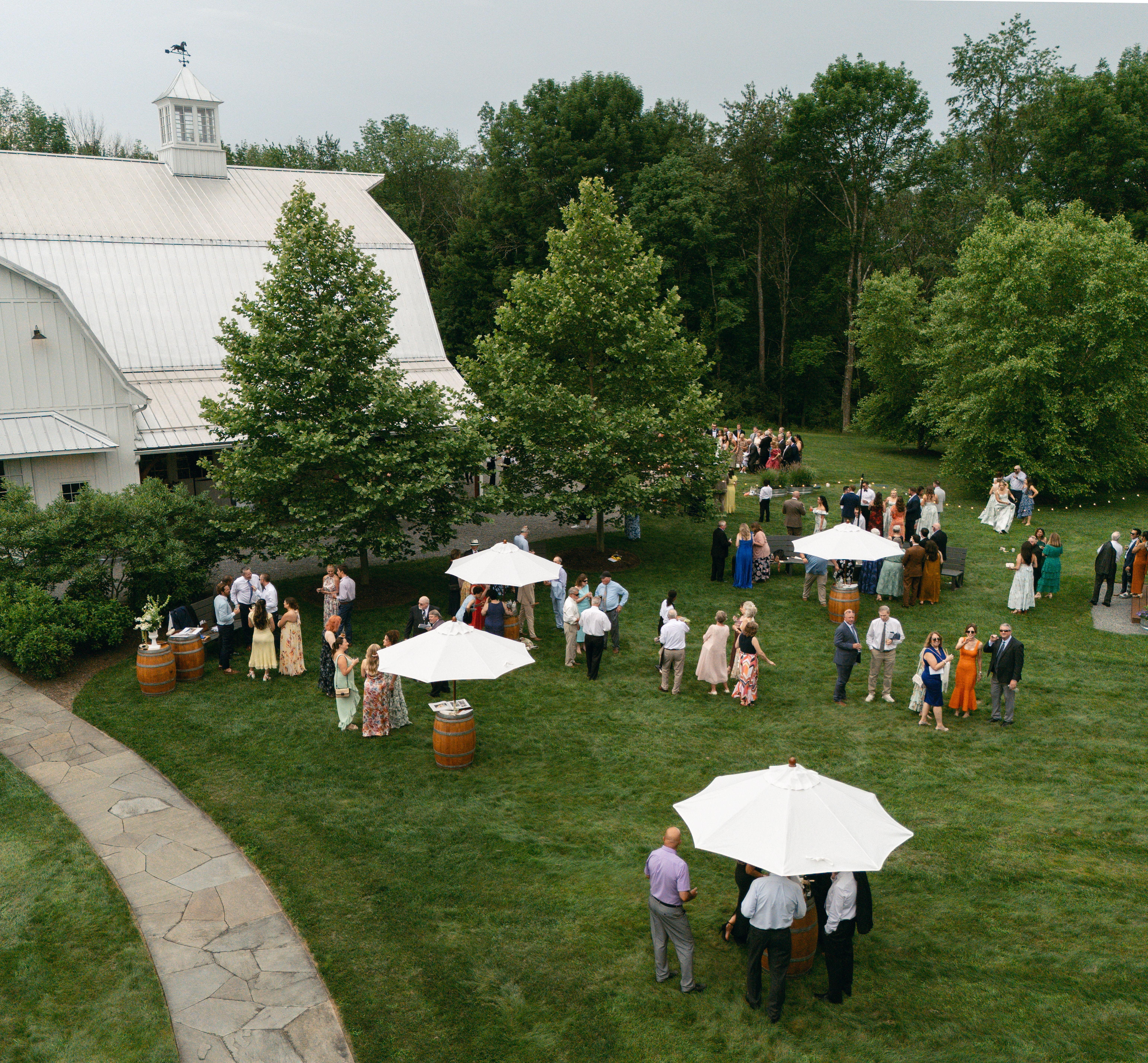 Wildflower on Watts is a space built and grown with love. Our property is situated on seventeen acres just outside of historic Honesdale, PA. It is surrounded by expansive views of rolling hills, swaying hay fields, and floral landscaping. The newly built white-barn venue will capture your heart with its soaring ceilings, floods of natural light, sturdy steel beams, glowing chandeliers, and thoughtful custom woodworking. Make the most of your momentous occasion by hosting a weekend experience with all of your closest friends and family members. Our multiday package allows you to enjoy the property for the entirety of your wedding weekend. To elevate your experience, the charming town of Honesdale offers you and your guests an assortment of activities to add on to your weekend: walk down Main St. and explore the boutiques, pop into the local breweries, enjoy a scenic train ride on the Stourbridge Line, or plan a hike to Honesdale’s overlook – Irving Cliff.