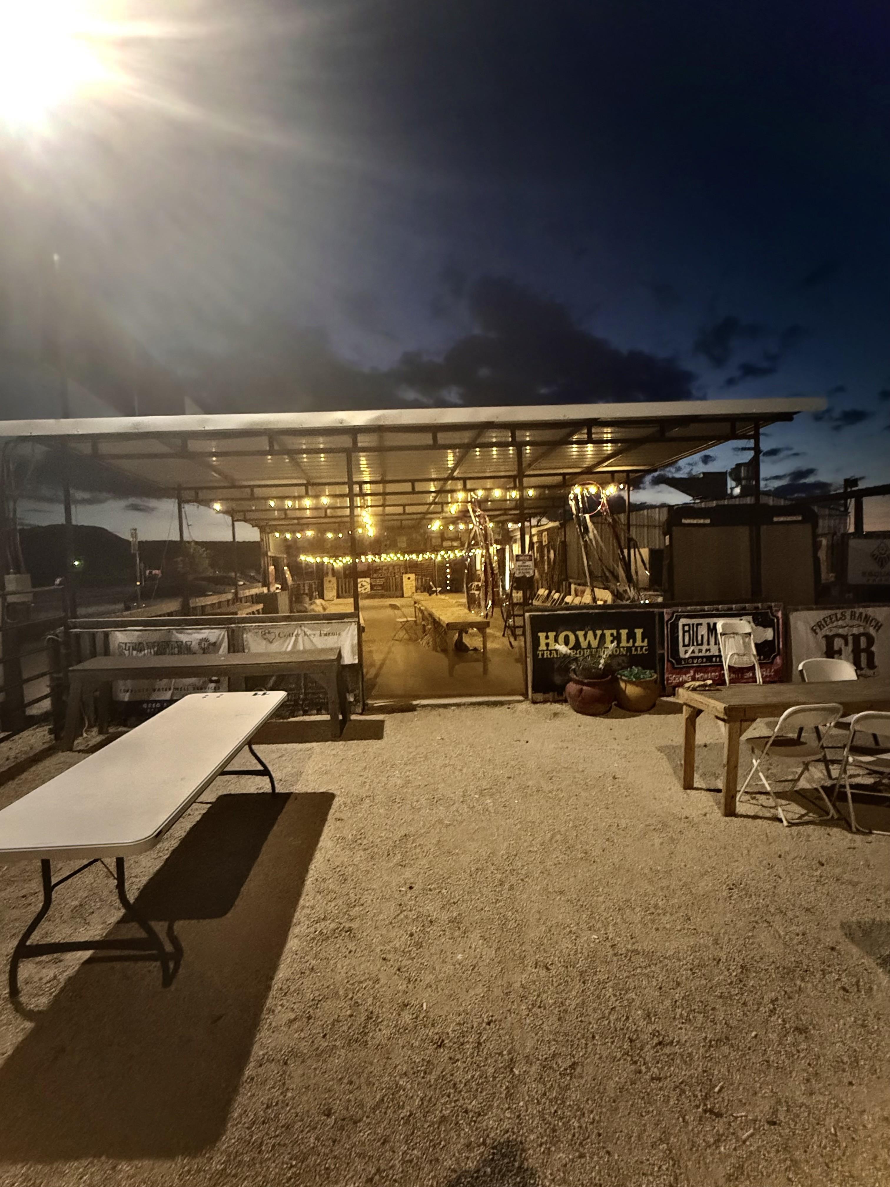 Our outdoor area features a spacious dance floor perfect for celebrating under the wide-open West Texas sky. As night falls, guests can dance beneath a canopy of glittering stars, surrounded by the peaceful beauty of our dim lighting