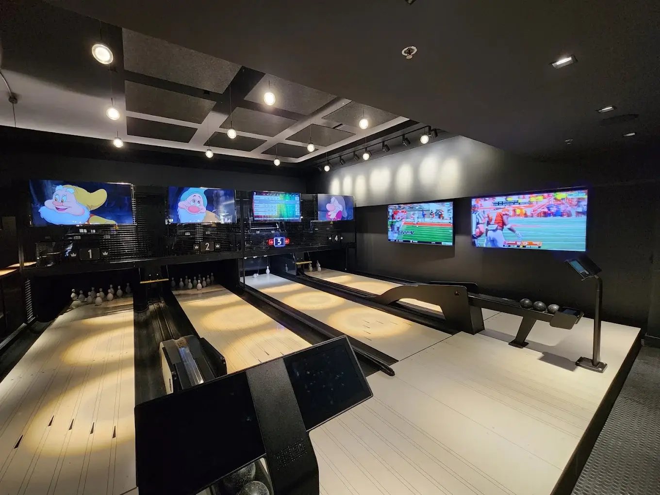 he Lounge and Lanes at Woodrows Duckpin Bowling provide a seamless blend of social interaction and active entertainment. This versatile space features seven duckpin bowling lanes alongside a comfortable lounge area outfitted with plush seating, high-top tables, and sleek rails. Guests can enjoy a curated selection of craft beers, wine, and cocktails while cheering each other on or relaxing to a great music vibe. The open-concept layout and large television displays make it easy to customize the space for everything from casual mingling to a lively, full-venue celebration, all while maintaining an intimate and inclusive feel