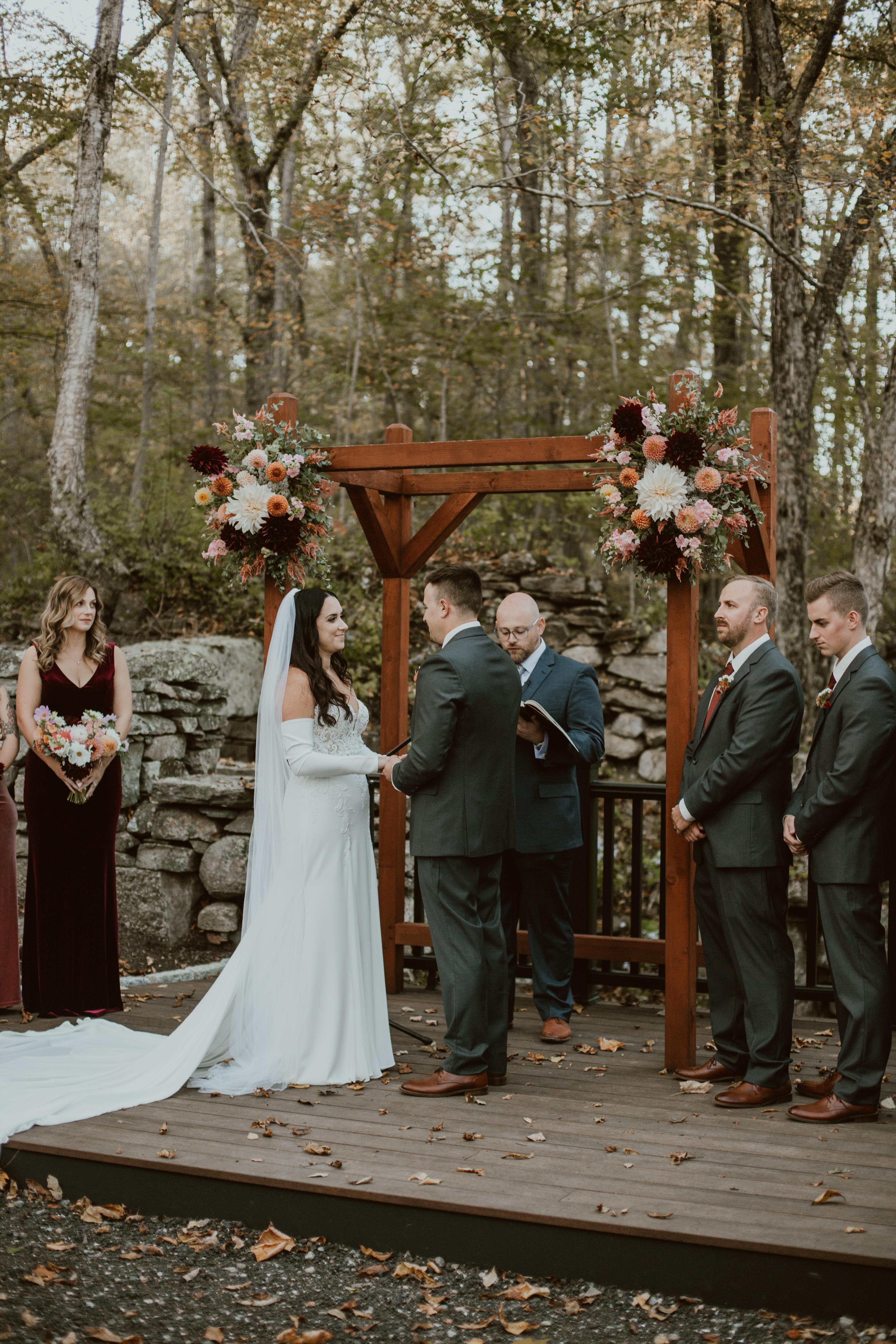 Country setting ceremony with a waterfall what could be better.