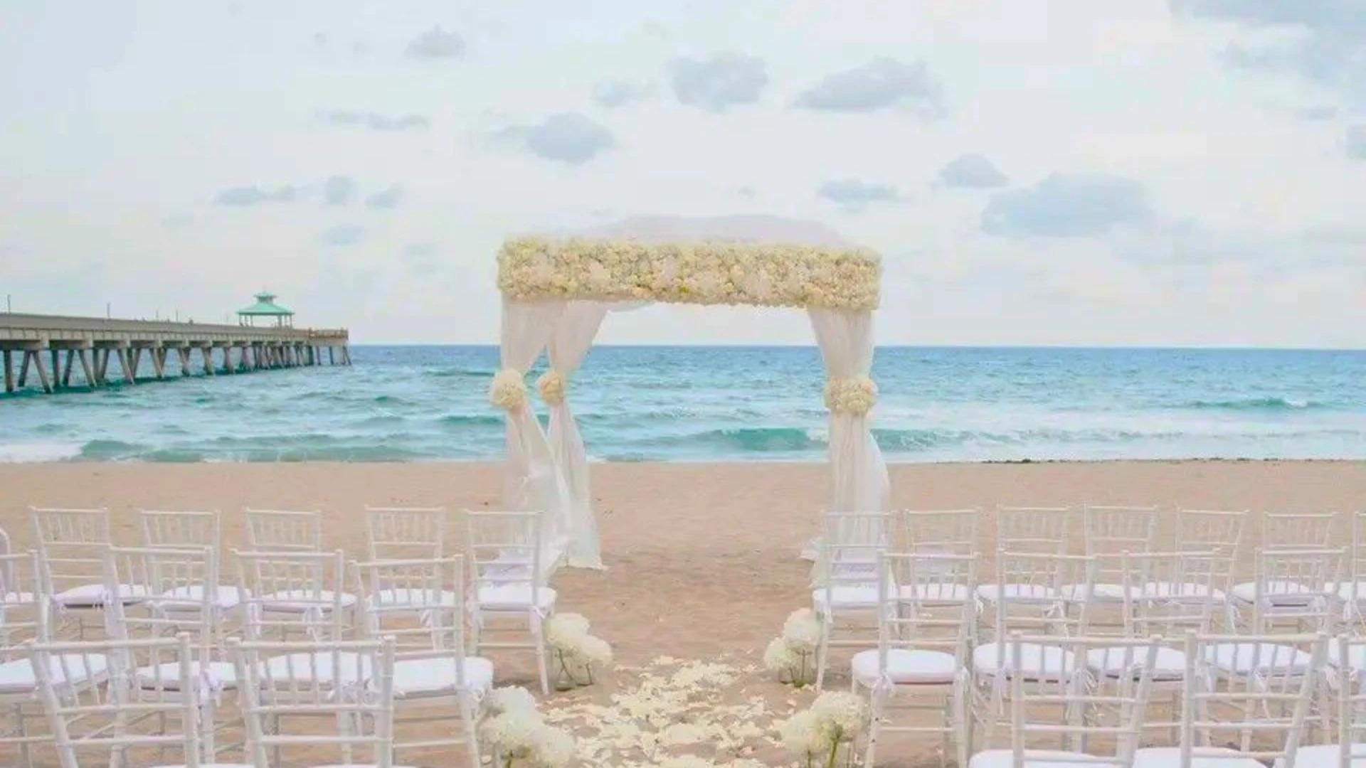 Stylish and intimate, our Wyndham resort is the perfect place to host a beautiful Deerfield Beach wedding. With access to the pristine white sands of Deerfield Beach and breathtaking floor-to-ceiling ocean views, our hotel provides an exquisite place to celebrate your most meaningful day. Wyndham Deerfield Beach Resort ensures that your South Florida wedding is effortless for all involved. Resort amenities include access to the white-sand beach located directly across the street, outdoor heated pool and hot tub, poolside dining and refreshments, and live entertainment every weekend at the Patio Bar and Grill. The resort also features two on-site restaurants, a 24-hour, fully equipped health and fitness center, a 24-hour business center, valet parking, and concierge services. The hotel’s on-site market sells snacks and personal-care items. We look forward to welcoming you to the Wyndham Deerfield Beach Resort!