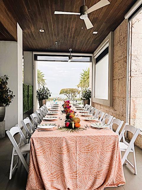 Viento Terrace at Zota Beach Resort Adjacent to Viento Kitchen + Bar, the Viento Terrace is a chic open-air venue overlooking the resort's tropical infinity-edge pool and the soothing waters of the Gulf of Mexico. This covered, breeze-swept terrace on the second floor offers the perfect setting for an intimate plated dinner for up to 60 guests or a cocktail reception for larger groups. While it's at its best during sunset, the terrace is equally ideal for send-off brunches and bridal luncheons.