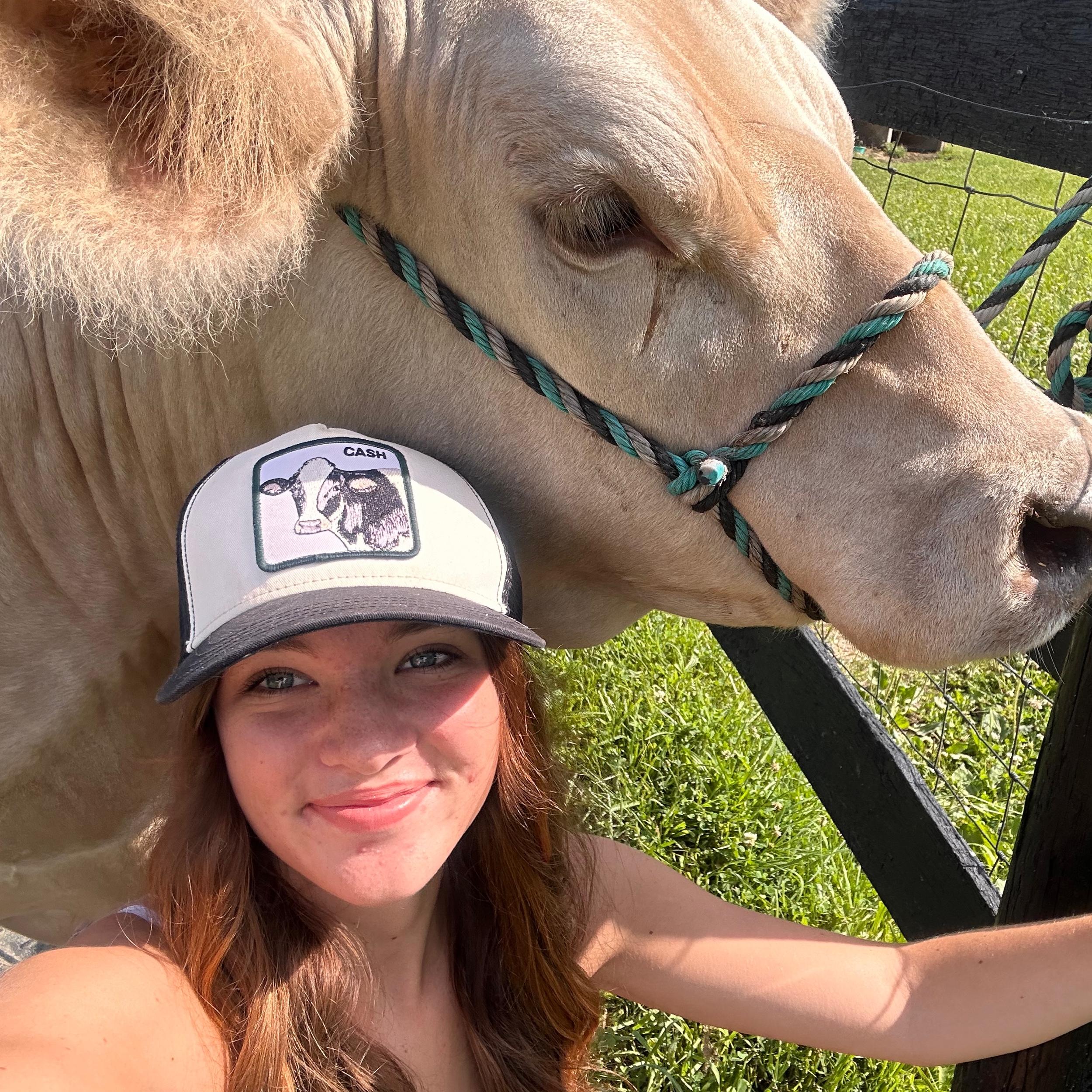 Bella has shown 8 different kinds of animals: horses, cattle, alpacas, bunnies, pigs, goats, sheep, and chickens