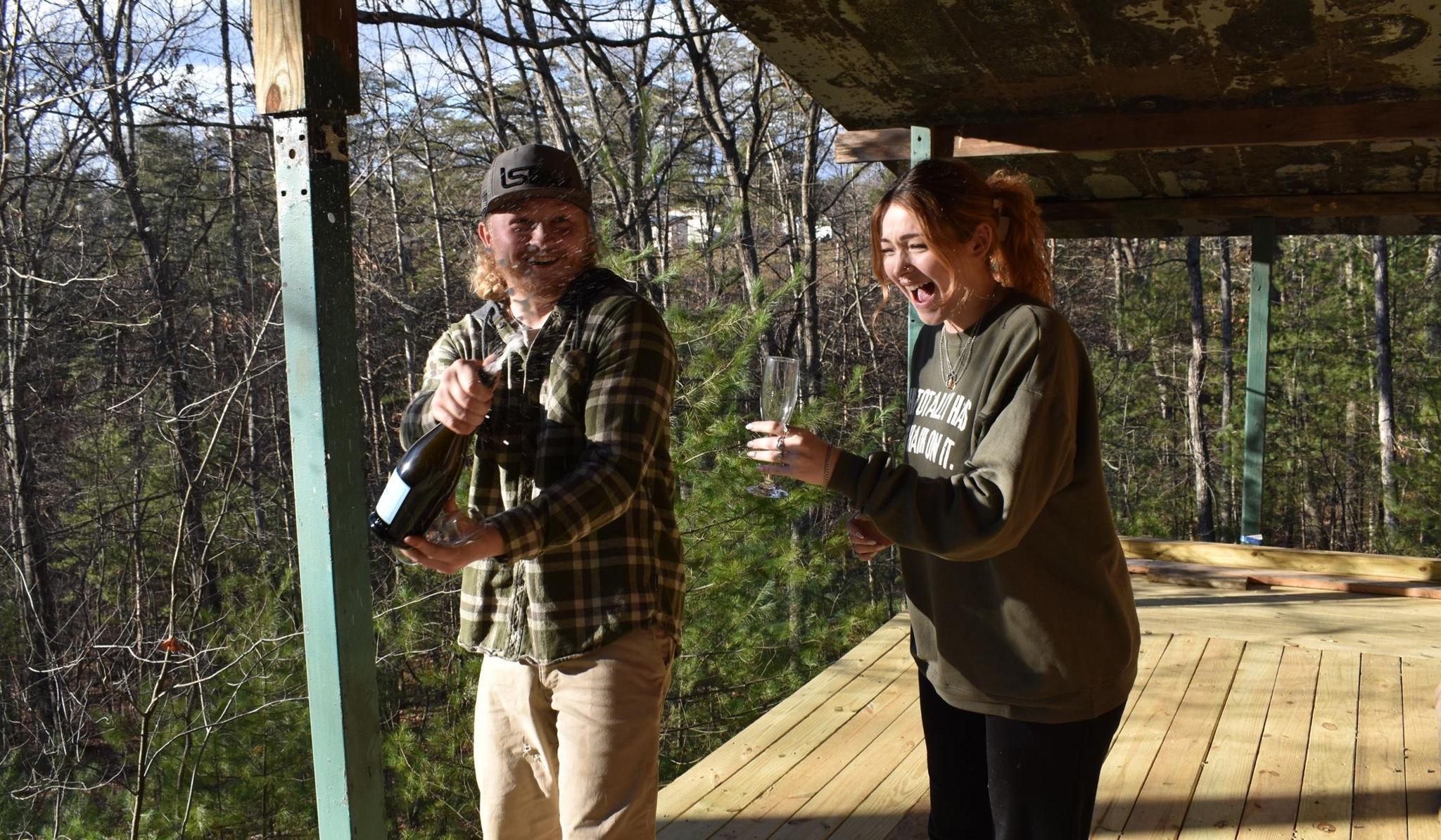 Our story begins over a year ago, when we bought a fixer upper house in Hedgesville, WV. This old hunters cabin, has slowly started to become a home with all kinds of projects to make it ours. After a year and some change, we were able to roll our land loan, into a construction loan. With the new loan, we are able to get everything done sooner, so that we can live in our cozy, rustic home. Before we can have some help to get it done sooner, we had to finish a few things first, such as ripping the drywall out of the master bedroom ceiling... Kota told me about a week before the 30th of December, that I needed to have that Monday off, because we had to get that drywall out, before the teams could come in and help speed up our process. I had my suspicions at first, but he was very convincing that we would ONLY be doing drywall and to wear clothes to work in. I had already scheduled appointments that day, but he told me to at least try to move them because he really needed me there. I was able to get the evening two appointments to take the weekend days before Monday the 30th. I was to get off around 2, and be at our house by 2:30. I ended up getting off around 1:40, so I decided to pick up some lunch for me and Boe, because Kota had mentioned he already got lunch from the corner store, down the road from our house. When I arrived at the house, I saw his truck parked right out front, like it usually is, and I assumed Boe was inside with him, because he didn't run up to my car when I pulled down our driveway. So, I ate my last two chick-fil-a nuggets, changed into my boots (since I thought we were doing drywall, I didn't want to wear my cute slippers and get drywall dust all over them), grabbed up the box of nuggets I got for our boy, and started to head inside. Then I realized I had forgotten my drink, turned around to grab it, THEN I started to make my way up the steps to the porch. When I opened our front door, all kinds of emotions and thoughts ran through my head. I was STUNNED. When opening the front door, my eyes filled with tears, as everything in front of me was a dream. There were blush, red, lavender, and white rose petals sprinkled in the middle of a candlelit aisle, lined with these beautiful, ruby red, heart-shaped balloons. The aisle way was laid out to end in two hearts, one big one that Dakota was patiently and nervously waiting in, and the other was a smaller heart, inlaid into the bigger one, also housing these flower petals and a ring box. There was music playing in the background; our song "Wondering Why" by the Red Clay Strays, and as I am taking it all in, I can't help but think how much I love this man, but also that he got me so good. Once I took it all in, I had to sit my chick-fil-a down on the floor, because my hands were full. This was so fitting though, because I am ALWAYS walking in with some food haha. Kota told me to set it down and we both giggled and I started making my way down the beautiful and carefully set up aisle. Once I met him at the end, he got down on his knee and expressed our love perfectly, asking me to marry him. I knelt down to meet him, telling him he already knew I would. To my surprise, he had my closest friends, and one of his best friends there, who helped him set up and make this all happen. They took so many photos and put so much care into helping him. Right before I arrived, a piece of drywall that we had propped against the wall, fell and blew almost all of the candles out. Sending them into a slight anxiety rigged, panic mode they are trying to light these candles like crazy and get back into position for when I walked in. This was so comically fitting though, because of course that would happen and of course I would walk in with food in my hands and spill some of my sprite out of my cup when I bent over to set everything down. This proposal was nothing short of perfect, in every way. He chose 12/30 because his grandparent's celebrated 59 years married that day.