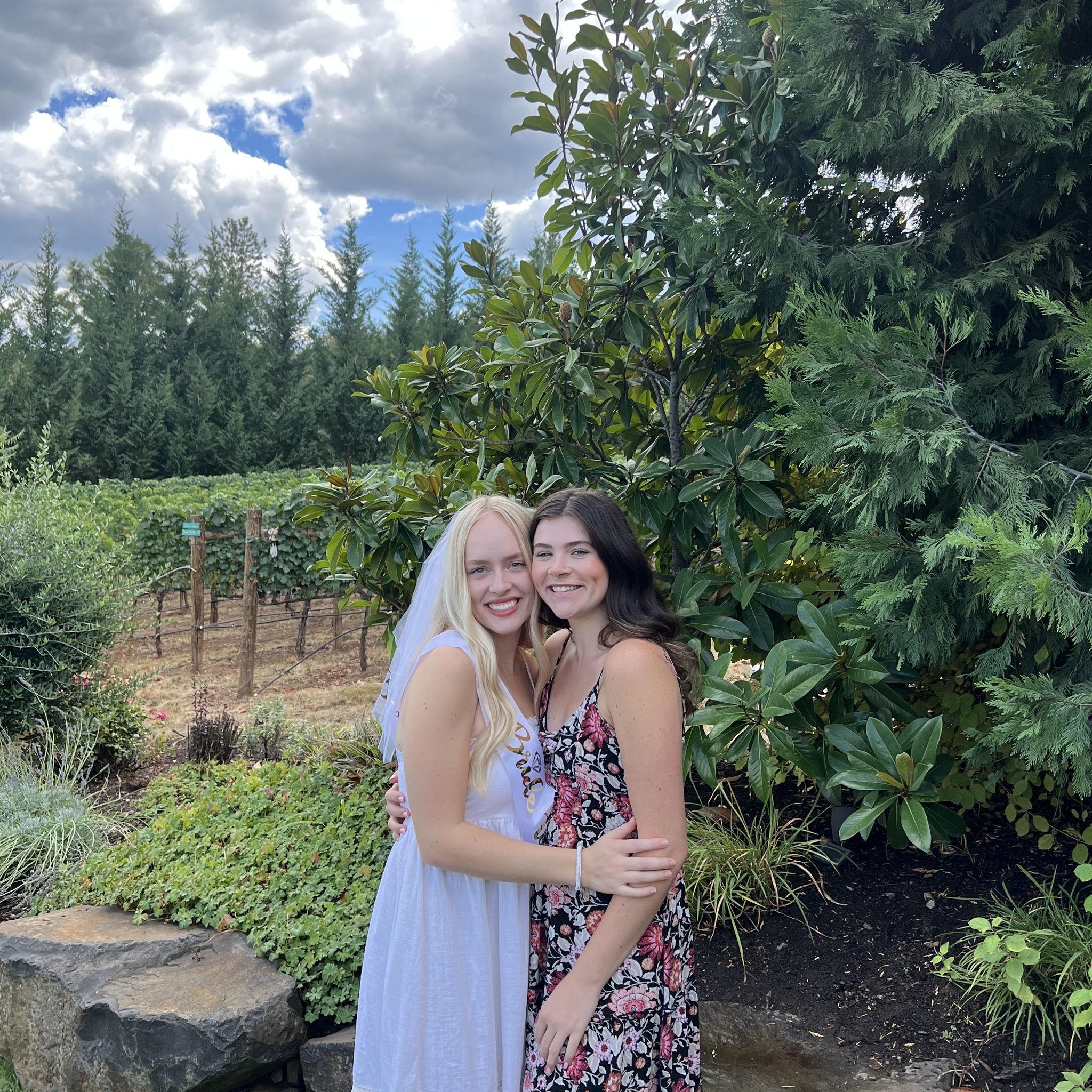 Averi is Peyton’s little sister and Abby’s partner in crime. They played travel softball together back in the day and little did they know all these years later they would become sisters. Averi can talk Abby into just about anything and they’re known to gang up on Peyton whenever the opportunity presents itself. Other than their major height difference and preferred alcohol, they’re almost the same person. Averi makes everything a good time (as long as she’s gotten enough sleep) and Abby can’t wait to have her by her side as a bridesmaid and officially as family.