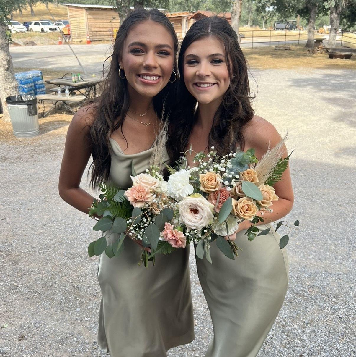 Alaina is not only one of Abby’s best friends, but her cousin too. They have many memories as little kids at family get togethers and create more and more today with camping trips, bonfires, and basically weekly dinners. Alaina is always getting Abby into new things whether it’s reading, making sourdough, thrifting, or playing in their adult volleyball league. She also introduced Abby to the world’s best margarita and now hibiscus syrup is a staple on hand whenever they’re together. It means so much to Abby to have Alaina standing with her on her wedding day.