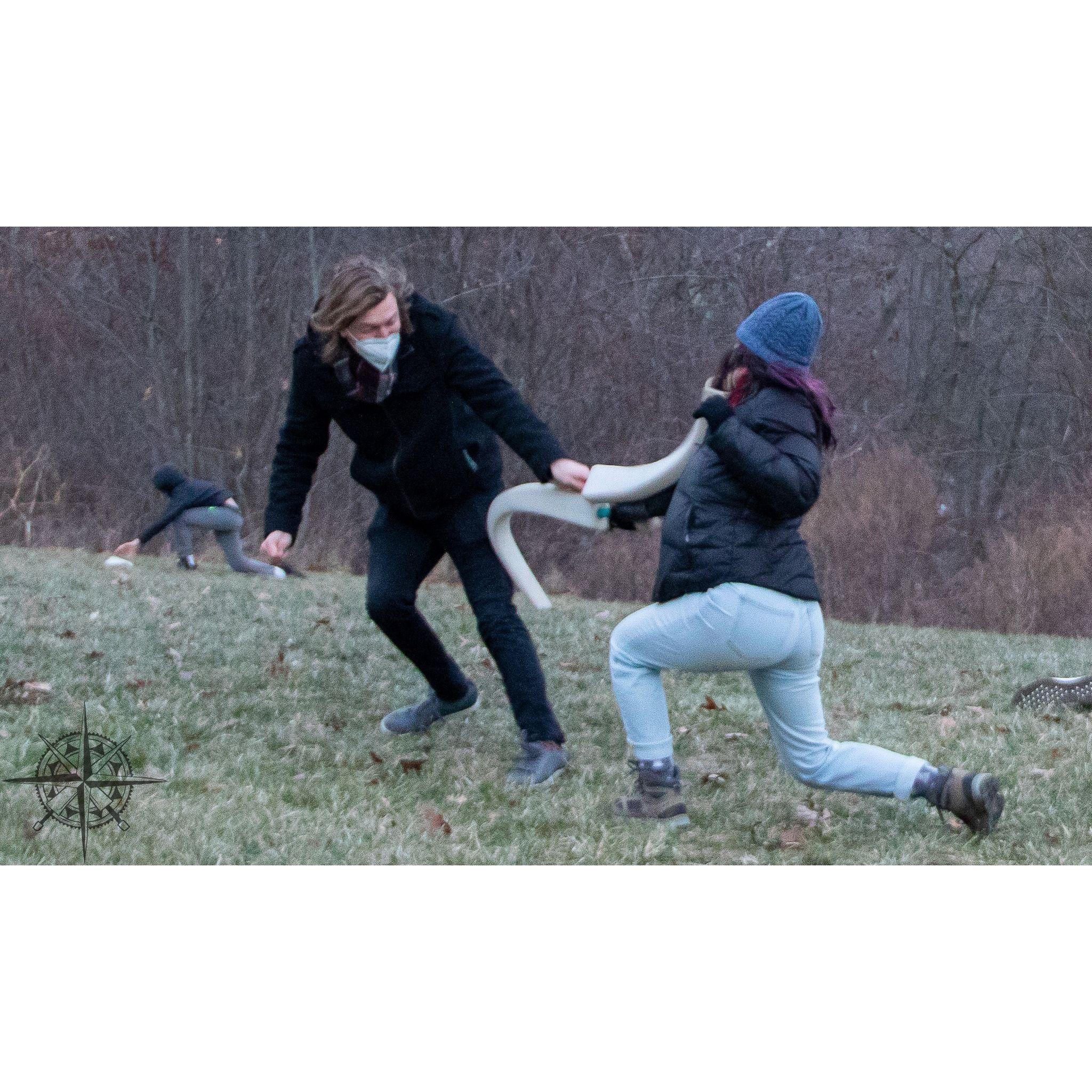 Deanna and Mike met at a live action roleplaying summer camp called The Wayfinder Experience in the summer of 2013. They continue to find joy in killing each other with foam swords to this day.