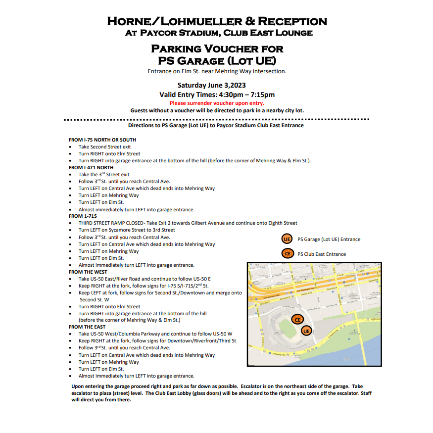 Please view below for the parking voucher for the UE garage. Print is preferred, however you can show the attendant the voucher on your phone. Directions are attached!