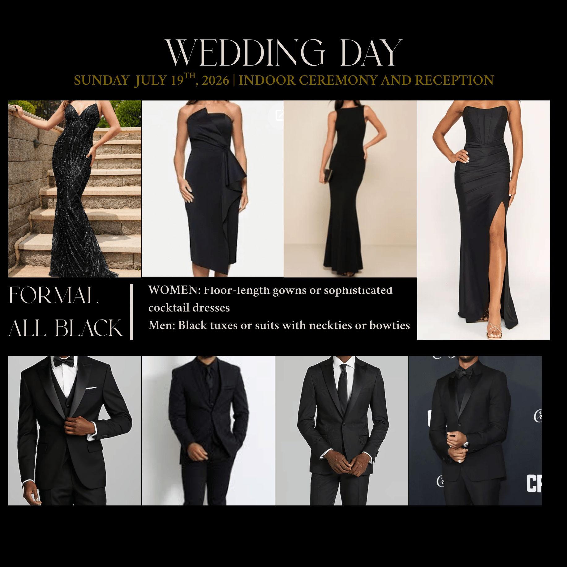 We kindly request ALL-BLACK formal attire for our celebration.