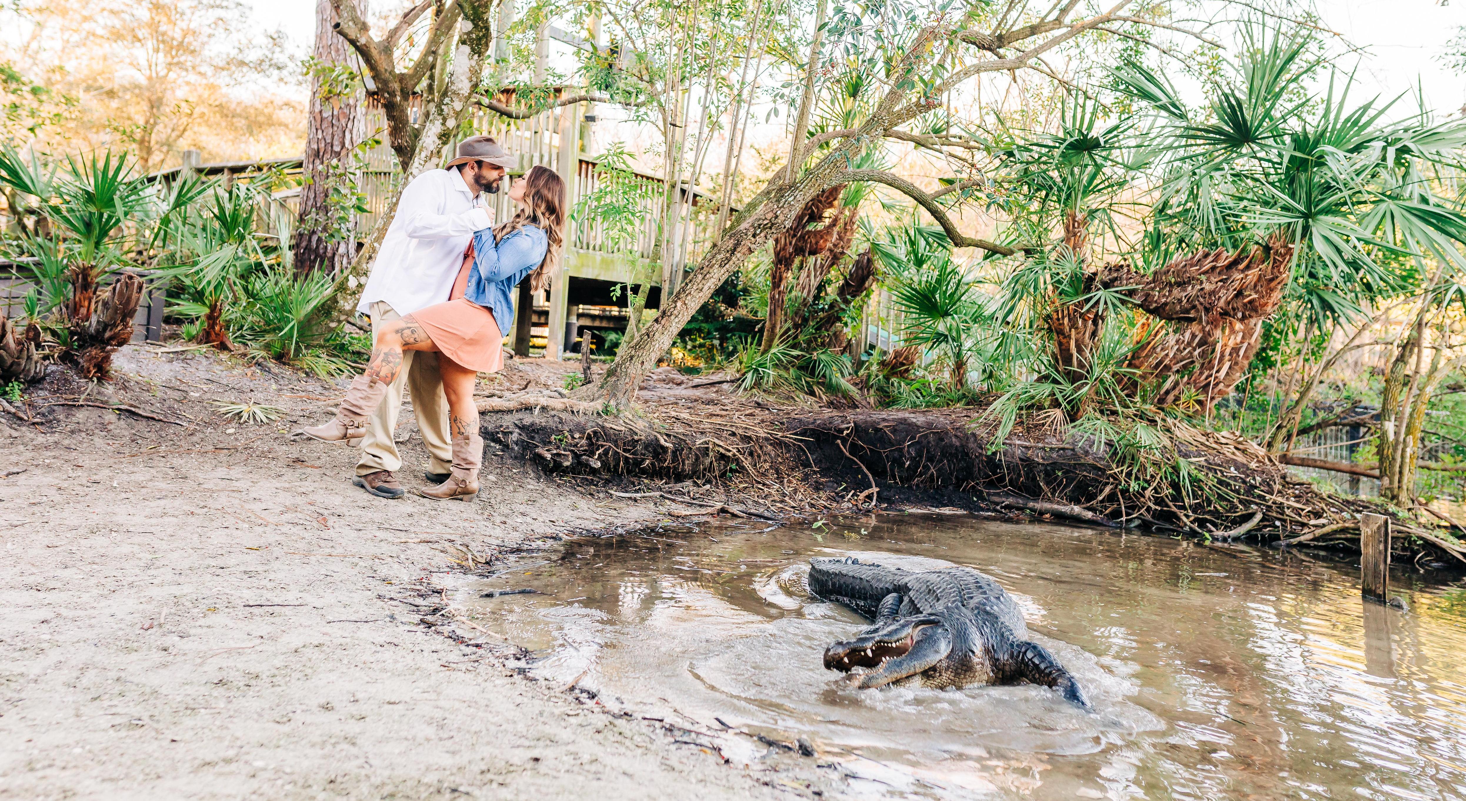 Cortni came to Donny's place of work, Gatorland in 2010. Donny was wrestling at the gator wrestling show. She thought he was cute. She later ran into him when he was driving the train. He made flirty comments, she made them right back. They exchanged numbers, hung out a few times, developed a friendship. Six years later in 2016, the two decided to make it official. Where they then brought a son into the world. Now, here we are three years later welcoming our friends & family to share our special day with us. Thank you for being a part of this. Here's to being an "Aldarelli for the West of our lives".