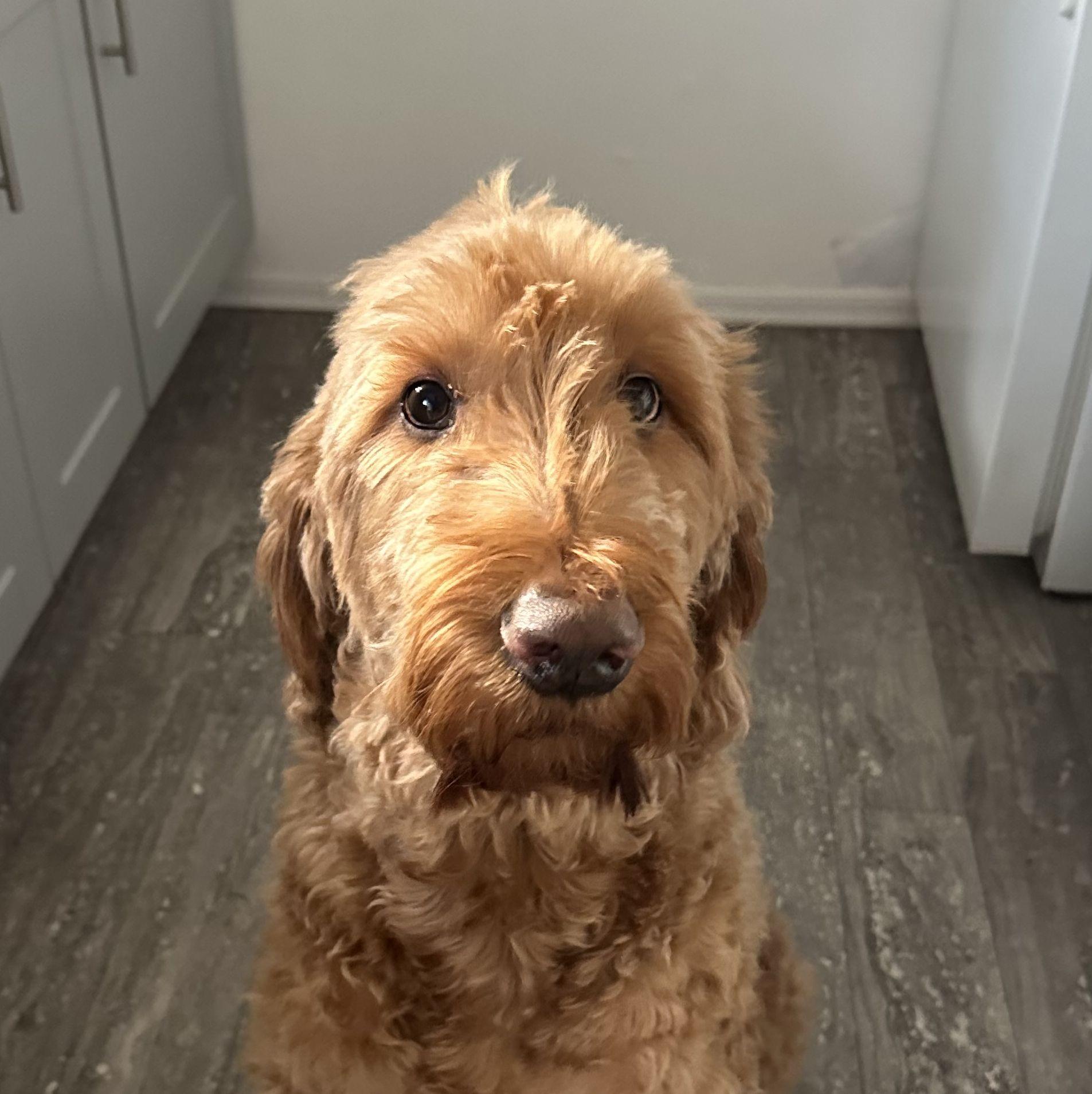 A goofy Goldendoodle
