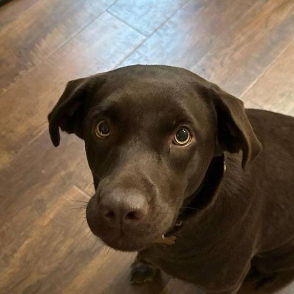 A loving Chocolate Lab