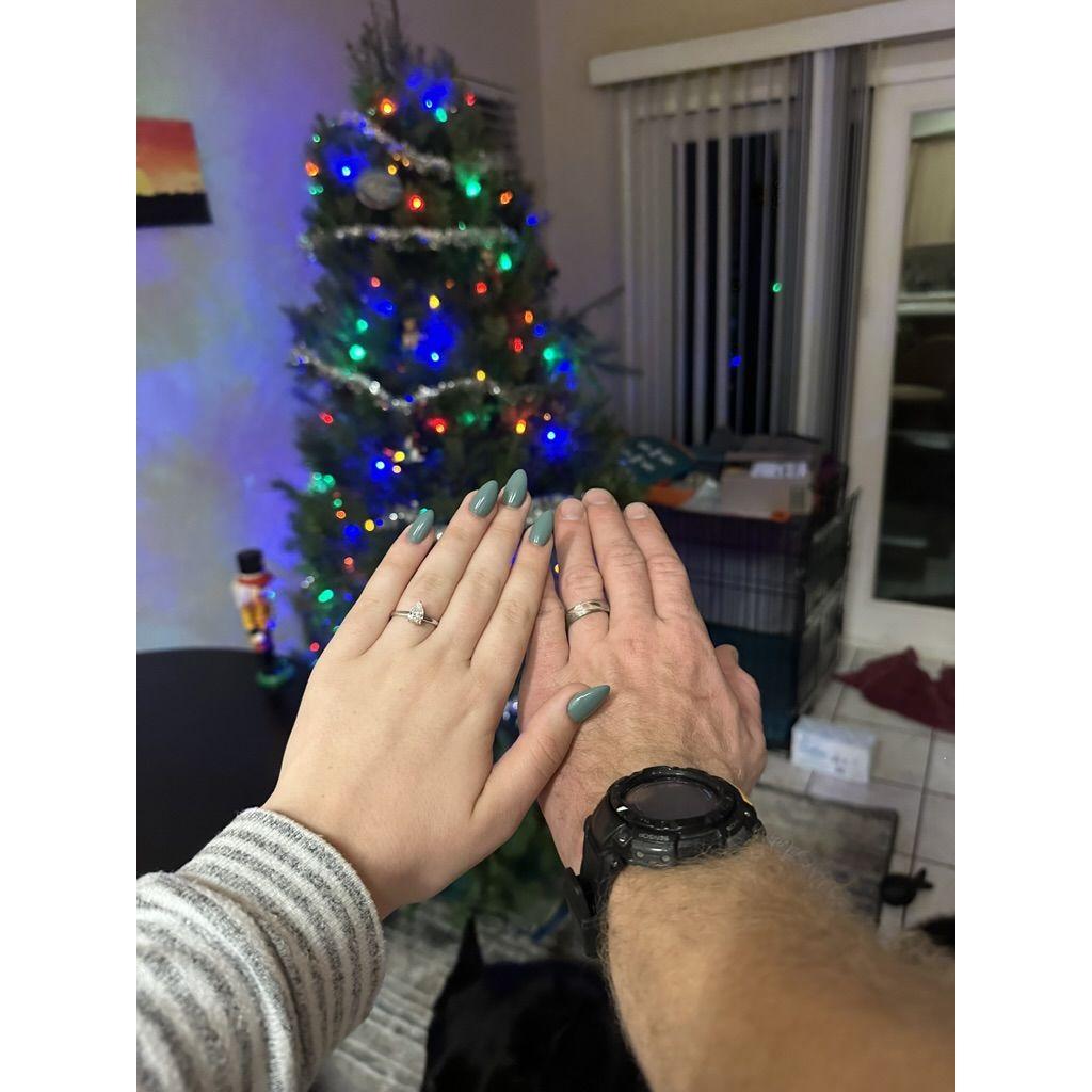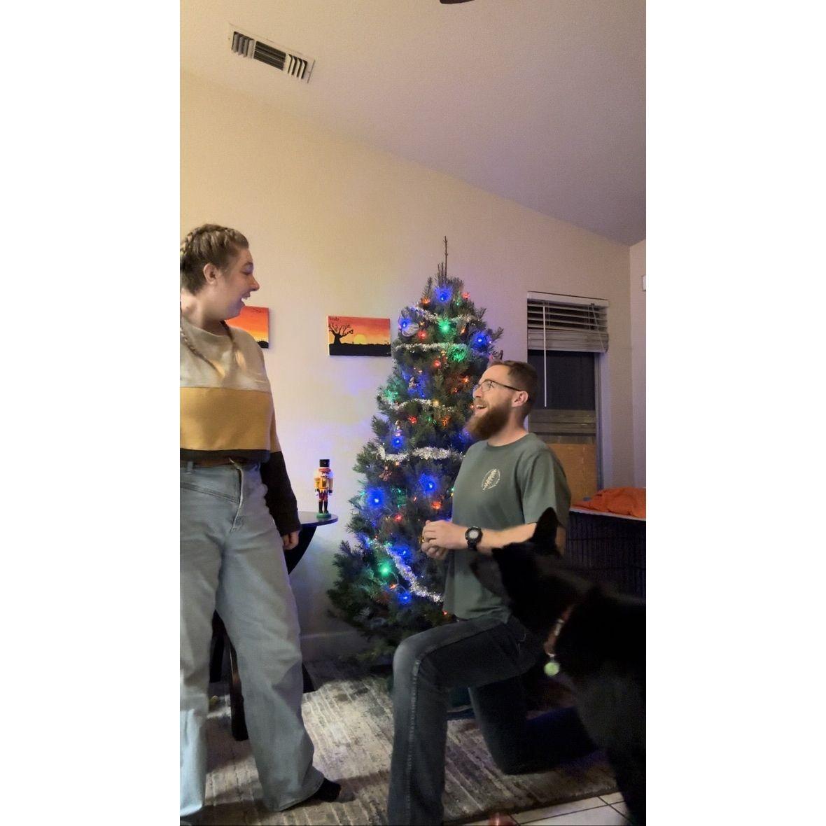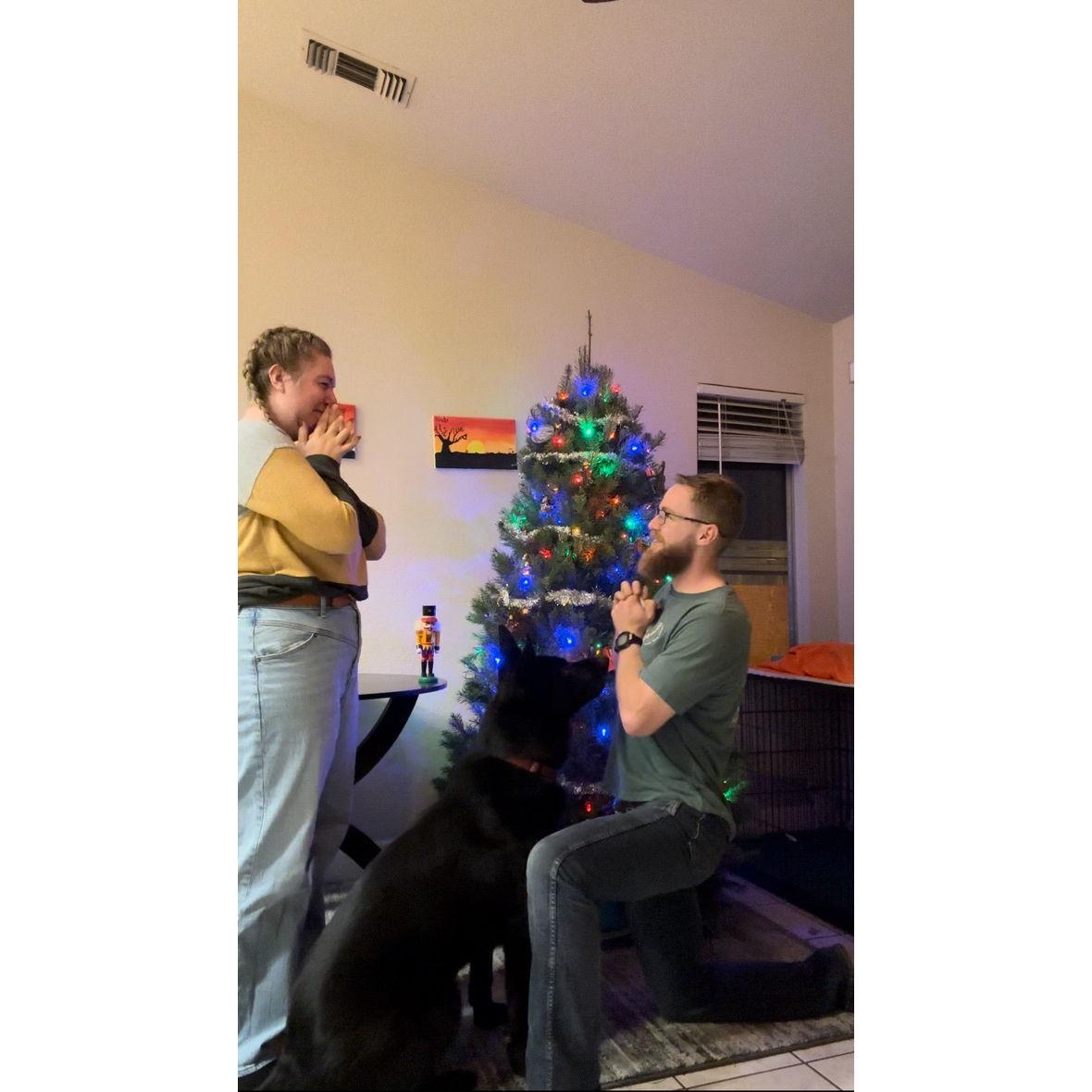 December 2023 Tim asked Alex to marry him in front of their Christmas tree at home with Saber carrying the ring!